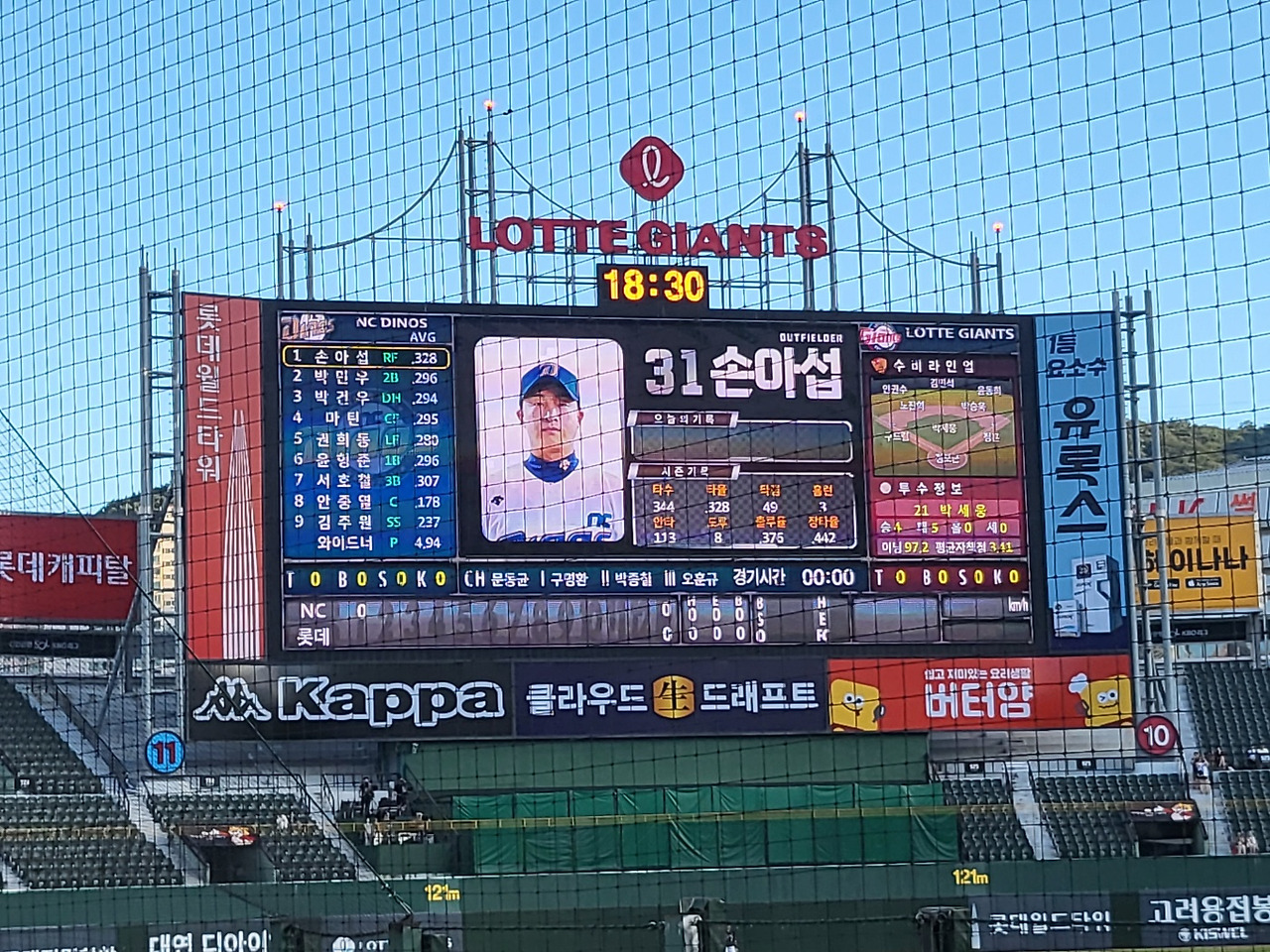 그래서 사직에 왔더니, "경남에도 야구팀 있다!" 이 연사 소리 높여 외치고 싶은 마음이 됐다. 그런 연유로 '낙동강 더비'가 더욱 치열한 걸까. 게다가 전광판에 선발 라인업이 뜨고, 타석에 손아섭이 들어섰을 때 기분이 오묘해졌다. 우리의 캡틴이 한 때는 롯데의 선수였다는 사실이, 믿기 어려울 지경이었다. "1번 타자~ 손아섭! 안~타~ 손아섭! 거침~ 없이~ 손아섭! 날려~ 버려~ 손아섭!" 하는 응원 구호를 목이 터져라 불러 제꼈다.