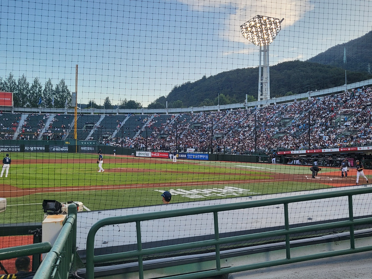 한국에서 세 번째로 오래된 구장인 사직이지만, 그럼에도 불구하고 그렇게 낙후됐다는 느낌은 못 받았다. 1, 3루 내야 옆에 더그아웃과 나란히 불펜이 붙어 있어 경기 관람에 지장이 있다는 평을 보았는데, 투수 덕후인 나는 개인적으로 좋았다. 경기를 보며 불펜 상황을 '듀얼'로 볼 수 있었기 때문. 311구역도 그런 맥락에서 예매한 거였는데, 자세히보니 312구역은 돼야 불펜이 코앞이고 311구역은 정확히는 더그아웃 뒤에 가까웠다. 경기를 보는 내내 왼쪽으로 시선을 돌려 불펜을 기웃거렸다.