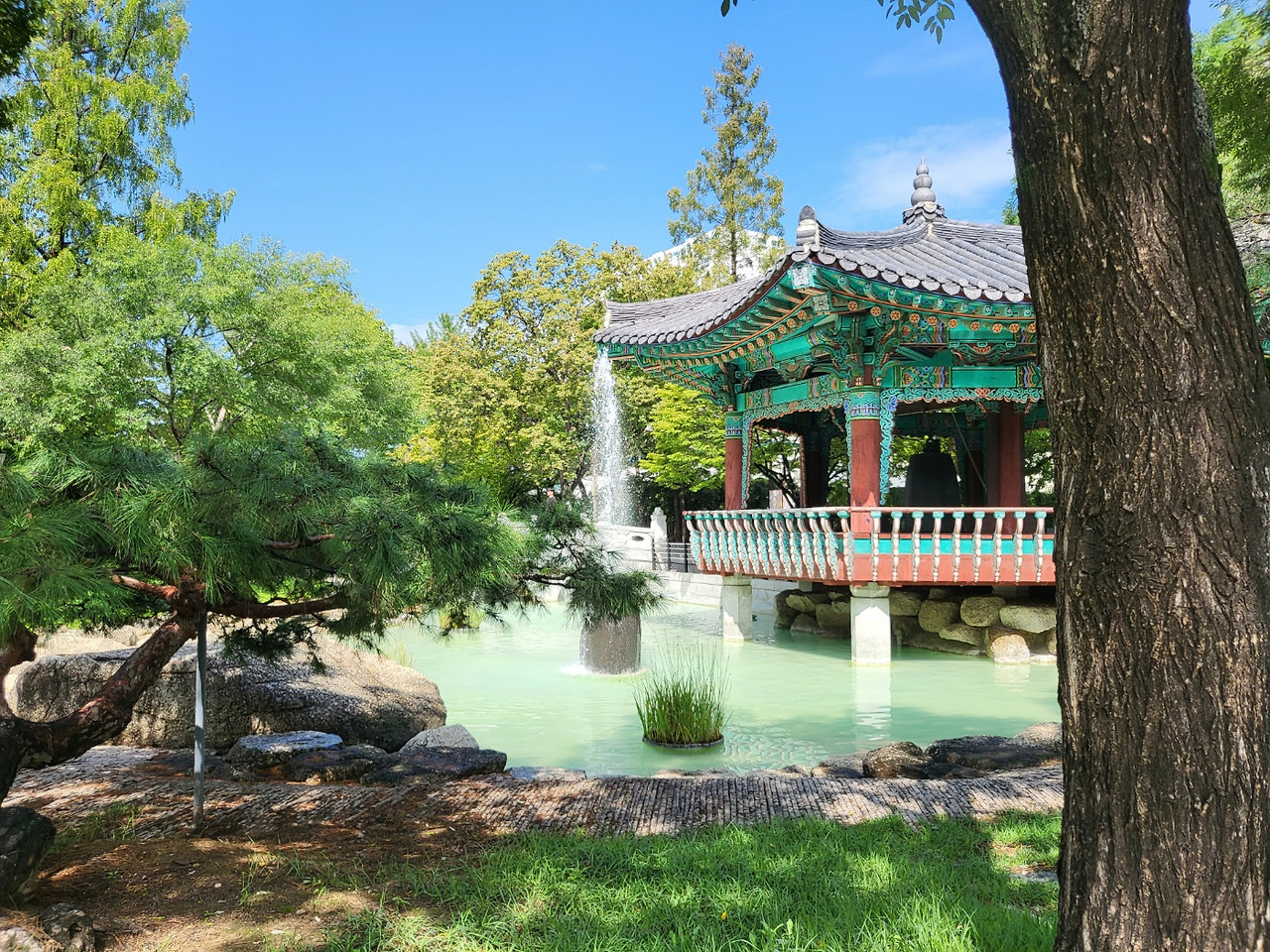 부른 배를 안고 식당 바로 옆에 있는 경상감영공원을 돌았다. 조선 선조 때 경상감영이 있었며 1910년부터 50여년 세월 동안엔 경상북도 청사가 있다는 곳. 대대로 경상도의 도청이 있었던 곳이다. 경상감영 관찰사의 집무실(선화당), 처소(징청각) 등을 느긋하게 돈다. 머리 위로 내리쬐는 햇볕이 점점 뙤약볕으로 바뀌고 있었다. 비는 그친지 오래다. 도심 속 작고 낡은 공원에서 실시간으로 물기가 말라가는 모습을 보는 일은 생동감을 선사했다. 또 공원 한 쪽에는 분수가 있어서 질세라 포말을 하늘로 흩뿌리고 있었다.