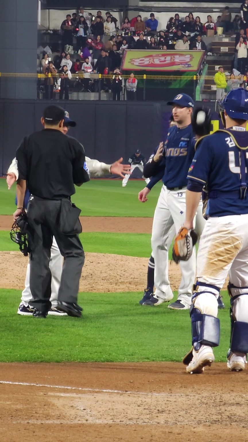 이날 5회에는 그 점잖은 페디가 주심의 볼 판정에 강하게 항의하는 모습도 연출됐는데, 얼마나 놀랐느냐 하면 벤치에 있던 강인권 감독이 마운드로 뛰어나와 말릴 정도였다. 투수들이 볼 판정에 민감한거야 아는 사실이었지만, 이기는 경기에서는 불필요한 제스처란 생각이 들었다. 내가 다 뛰쳐나가, 페디를 말리고 싶은 지경이었다.