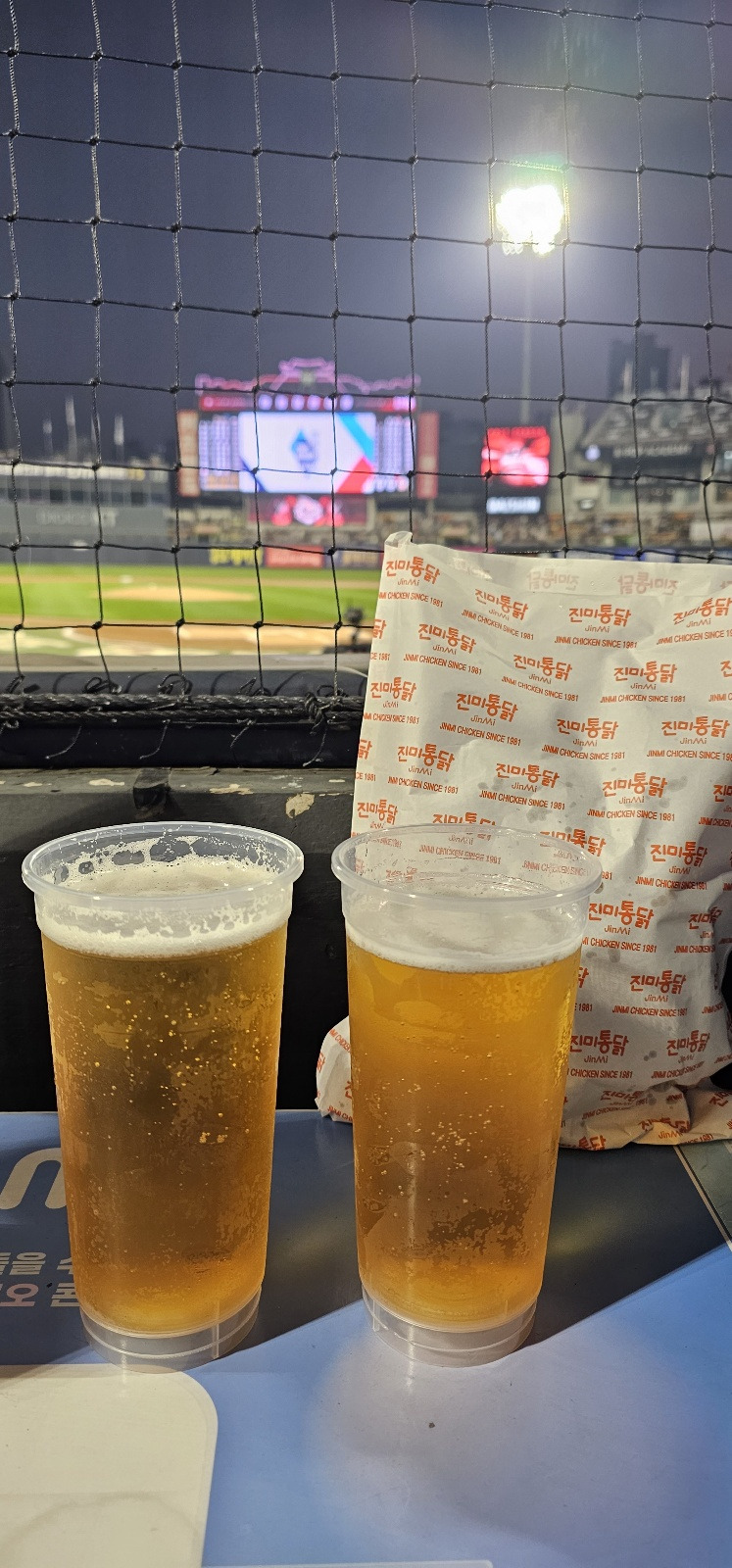 위팍의 명물인 정지영커피로스터스의 코코넛커피를 하나씩 입에 물고, 두 번째 명물인 진미통닭을 테이크아웃해가지고 와서, 맥주 두 잔과 함께 자리에 앉았다. 6시 30분, 이윽고 경기가 시작됐다. 부상으로 준플레이오프에 출전하지 못했던 우리의 에이스, 아니 KBO 최고의 투수 에릭 페디가 마운드에 올랐다. 부상 여파로 경기 감각이 떨어졌을까 걱정했는데, 그것은 단순 기우라는 것을 그의 피칭이 온몸으로 증명해보였다. KT의 공격 이닝, 즉 우리의 수비 이닝은 더 없이 짧았다.