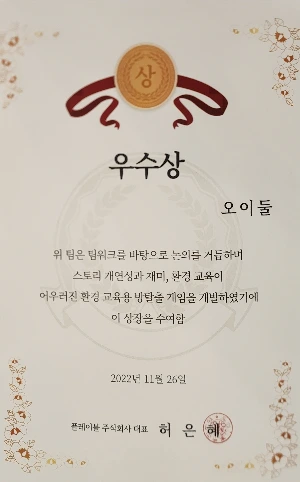 부끄럽지만 6년 동안 일하면서 스스로 '잘 만든 프로그램이다!'라고 생각이 든 게 처음이었어서 더 그랬던 것 같다. 나 스스로 만족함을 얻었으니 '올해 뭐라도 했다!'라고 끝나기만해도 만족스러운 교육이었는데, 정말 생각지 못하게 마지막 수료식 날 우리 팀이 '우수상' 수상까지 했다. 보람이 제곱이 되었다.