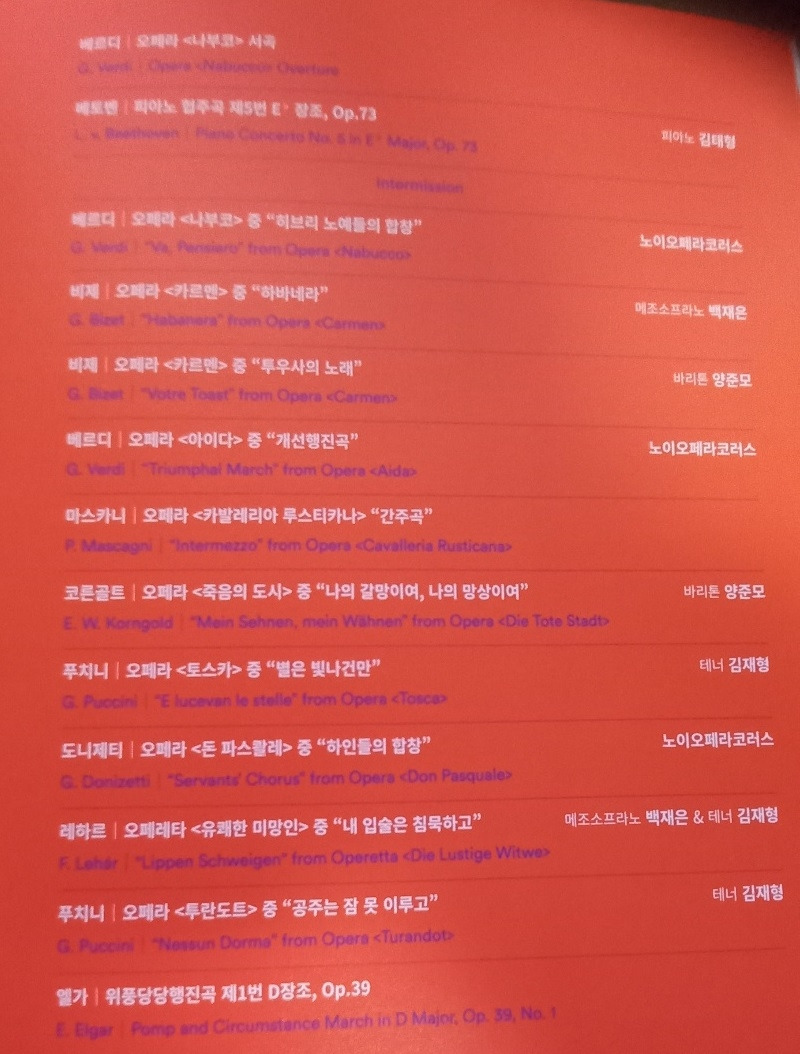 그리고 음악도 좋았지만, 가장 좋았던 것은 그 음악을 이끌어 내는 지휘자의 지휘에 배인 땀과 열정이었다. 처음부터 끝까지 최상의 소리를 이끌어내기 위한 지휘자의 손짓(온몸으로...)이 내 가슴을 따뜻하게 했다.