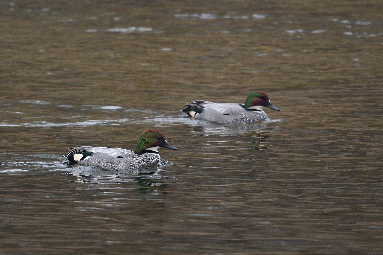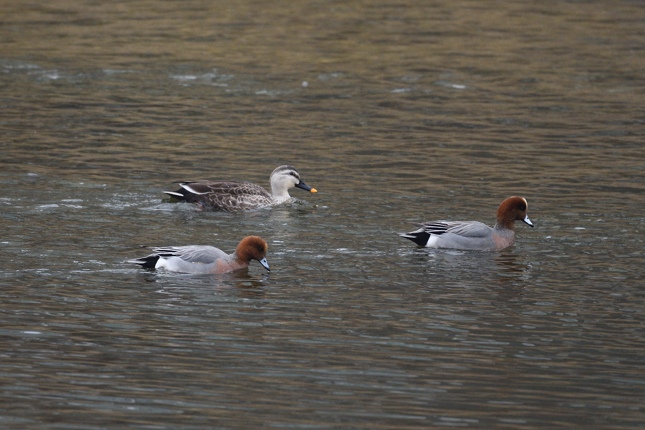 흰뺨검둥오리와 함께 가는 홍머리오리