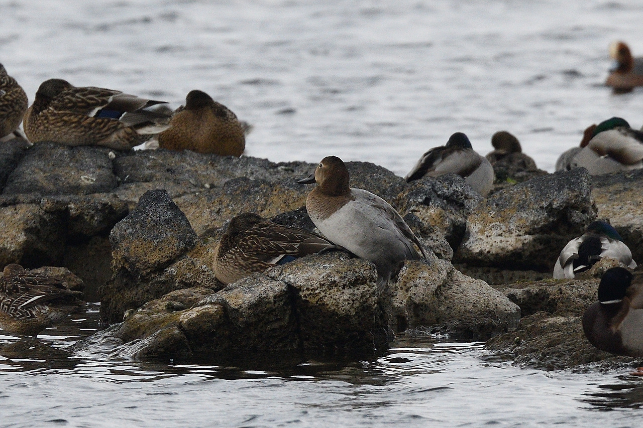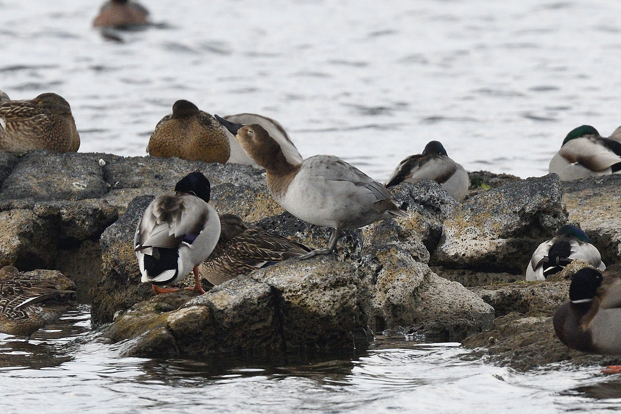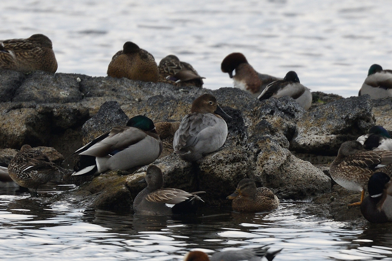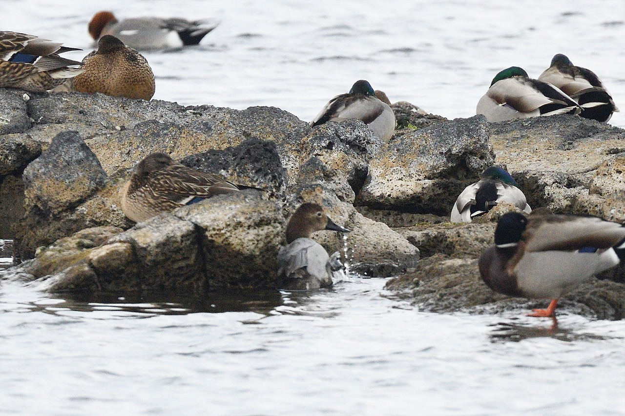 큰흰죽지가 있는 성산 하수종말처리장 앞 바다(도움이 없으면 찾기 힘들다)