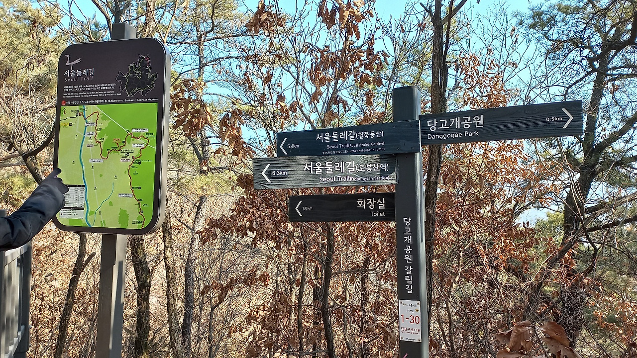 날씨가 좋은 2월의 토요일 우리는 당고개역에서 만나 이른 점심을 하고 서울 둘레길 1-2 구간을 걷기로 했다. 엊그제까지 추웠기에 복장을 단단히 하고 왔는데, 햇빛은 따갑고 바람은 잔잔해 둘레길을 걷기 좋았다. 그리고 미세먼지 나쁨이라고 하는 날, 산 위에서 바라본 하늘은 쾌청하기만 했다.