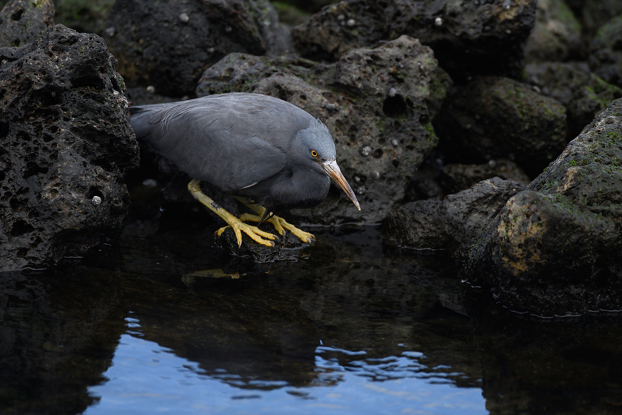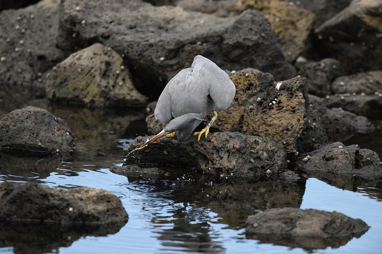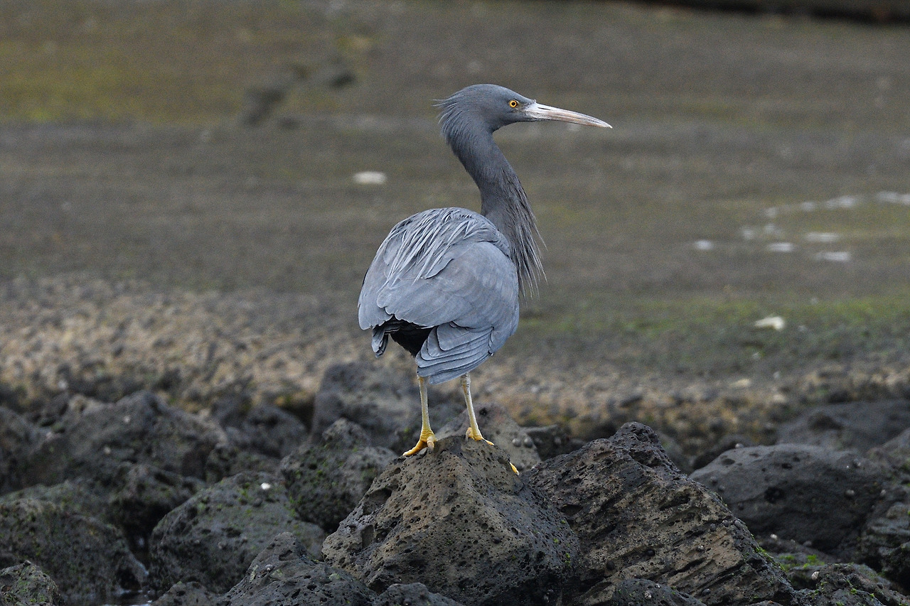 바위 위에 버티고 선 흑로(몸을 펴면 꽤 큰 편...)