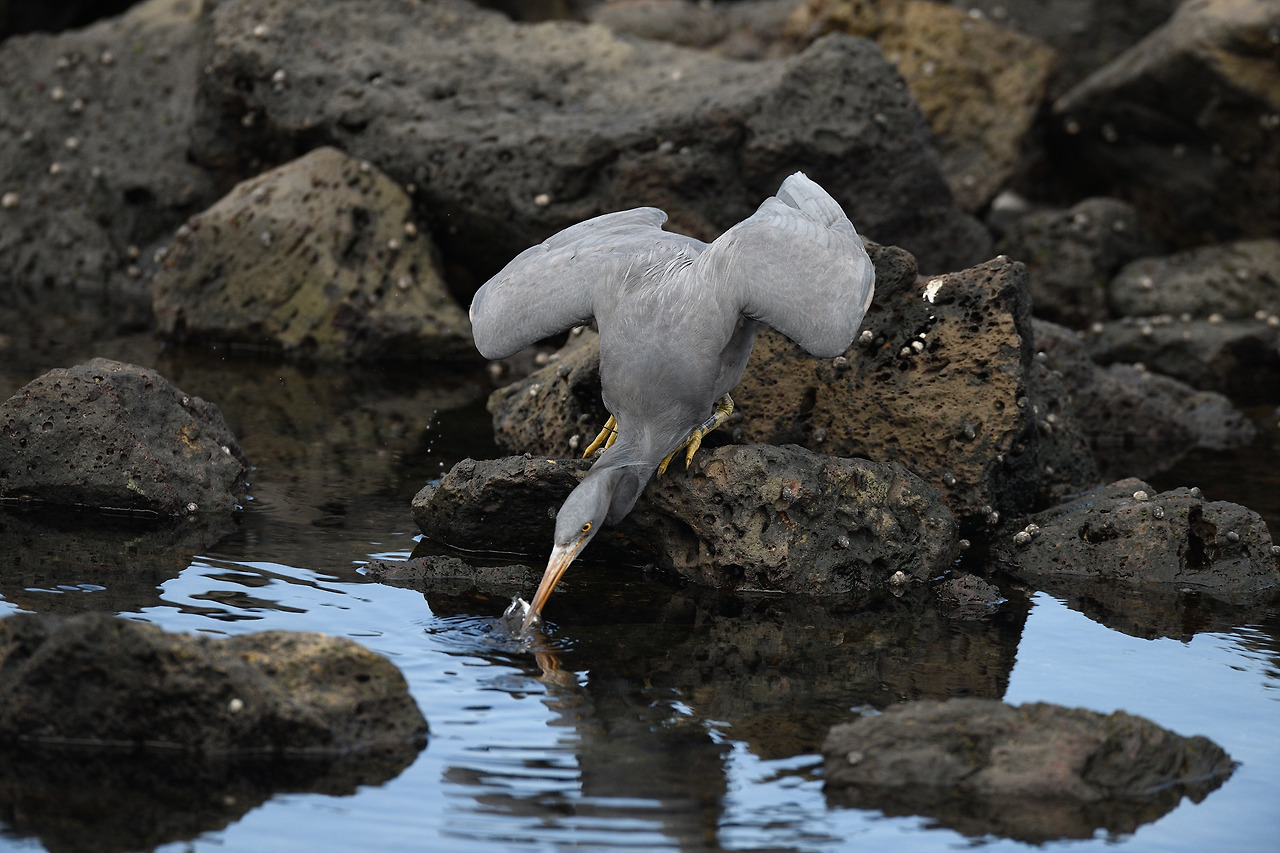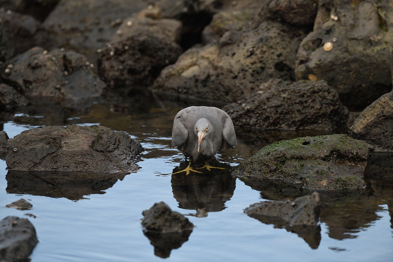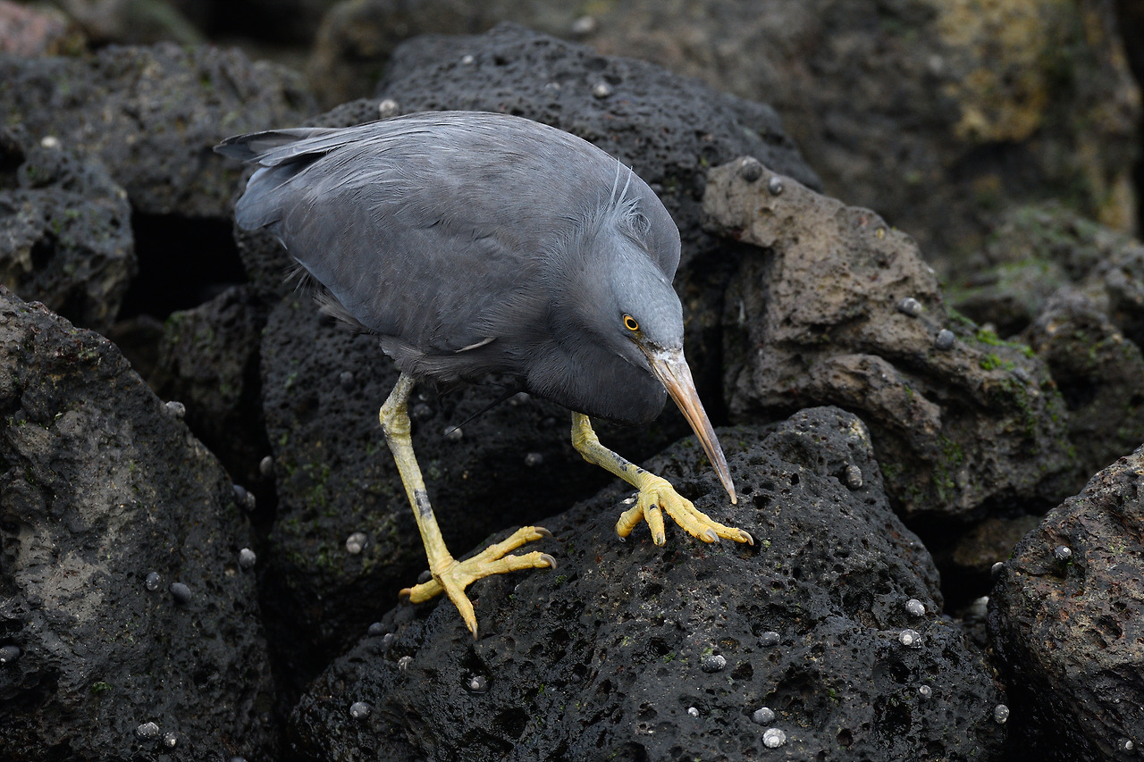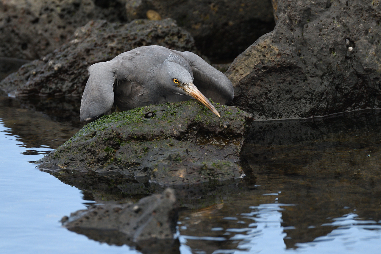 바위 위에 버티고 선 흑로(몸을 펴면 꽤 큰 편...)