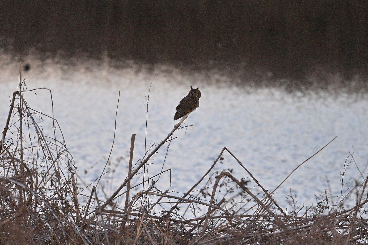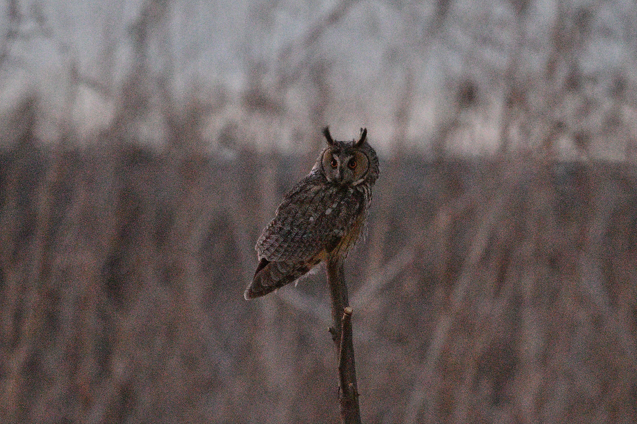 날은 어둡고 체감온도 급강하, 더 이상 찍을 수 없어...(눈이 주황색이고 귀깃이 잘 보이는 것은 칡부엉이라네요. 정정합니다)