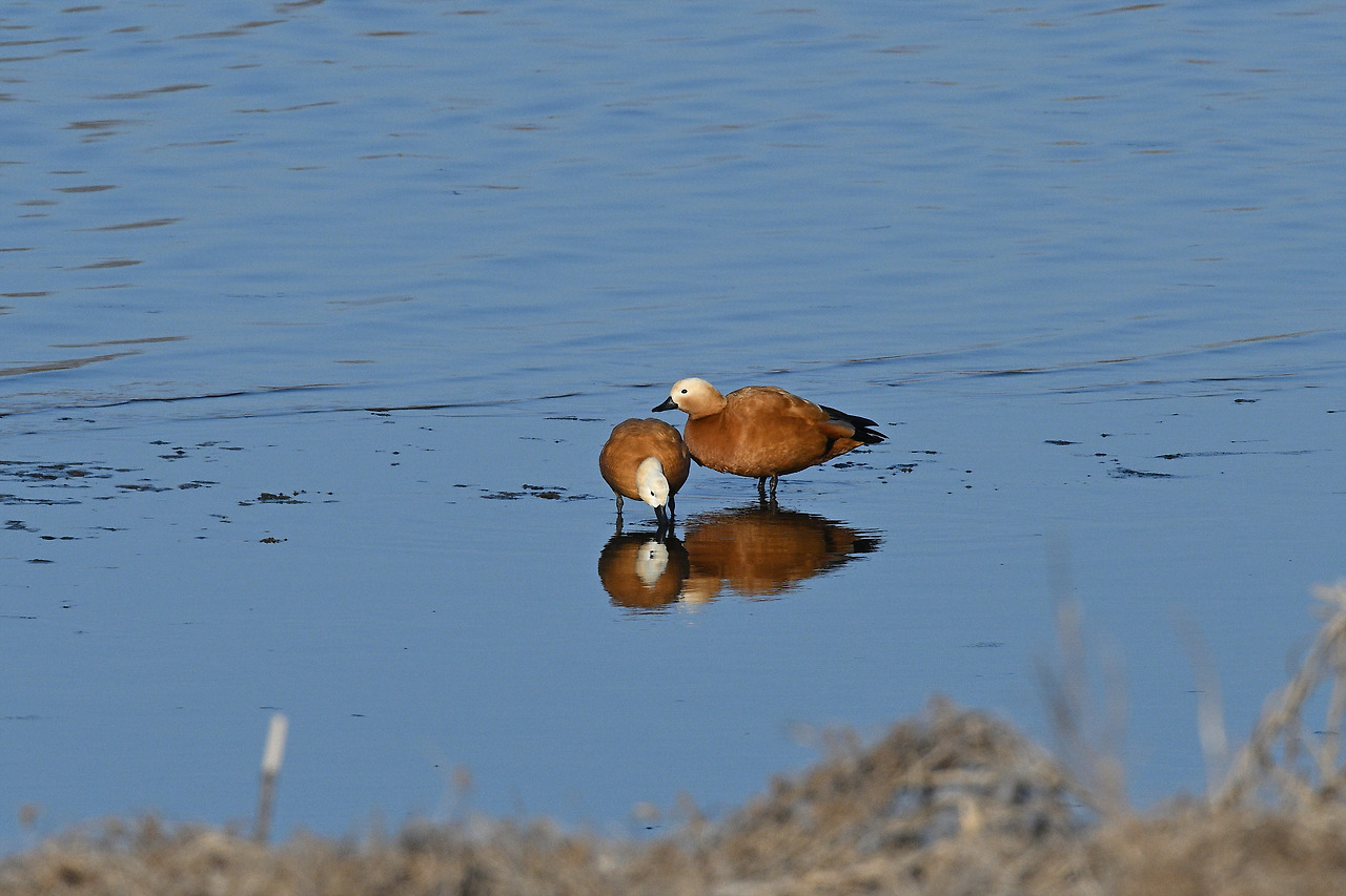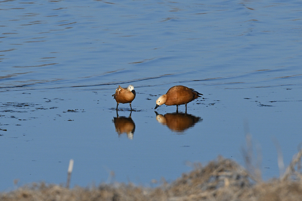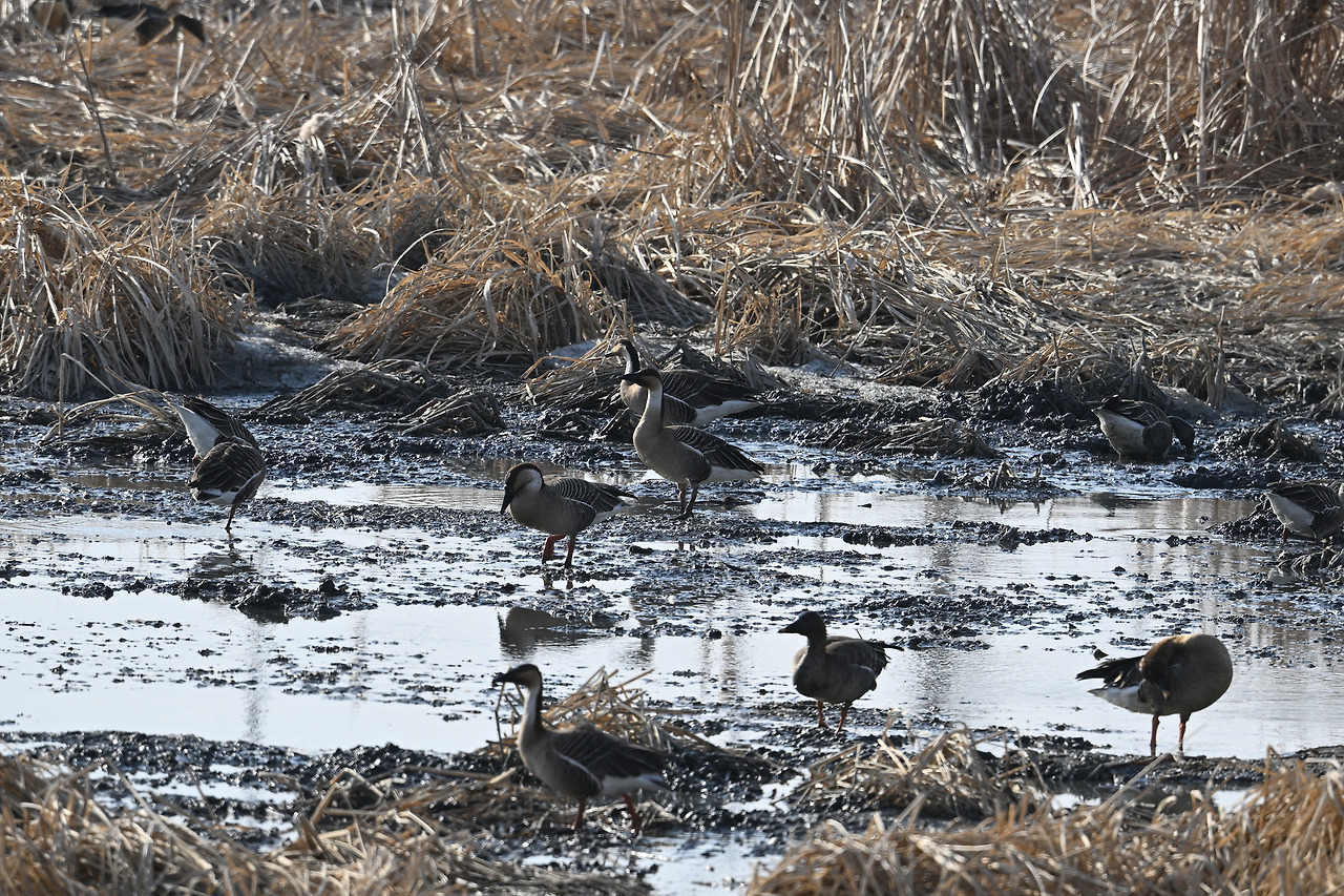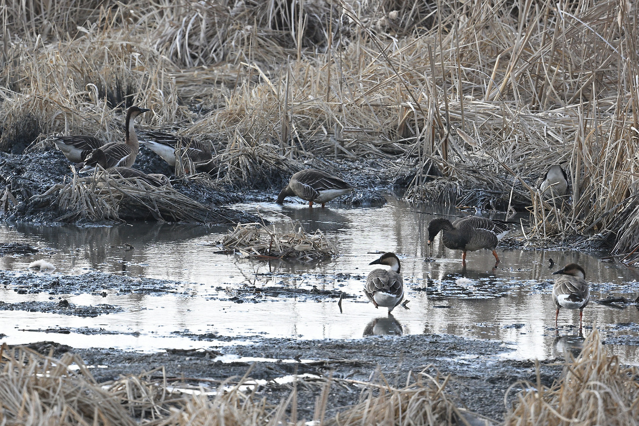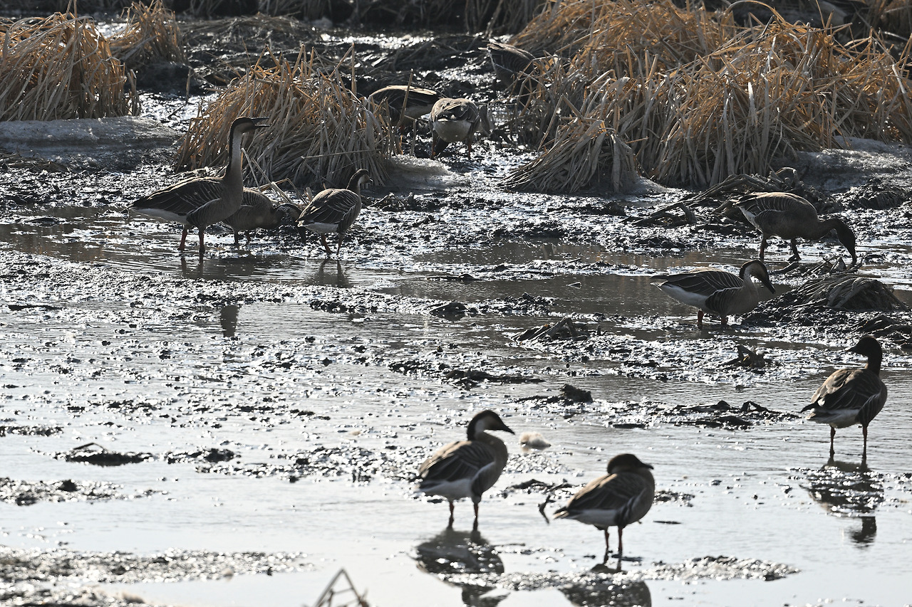 출판단지 습지에 모여 있는 개리(목 부분이 흰색 검은색 나뉜 것이 개리)