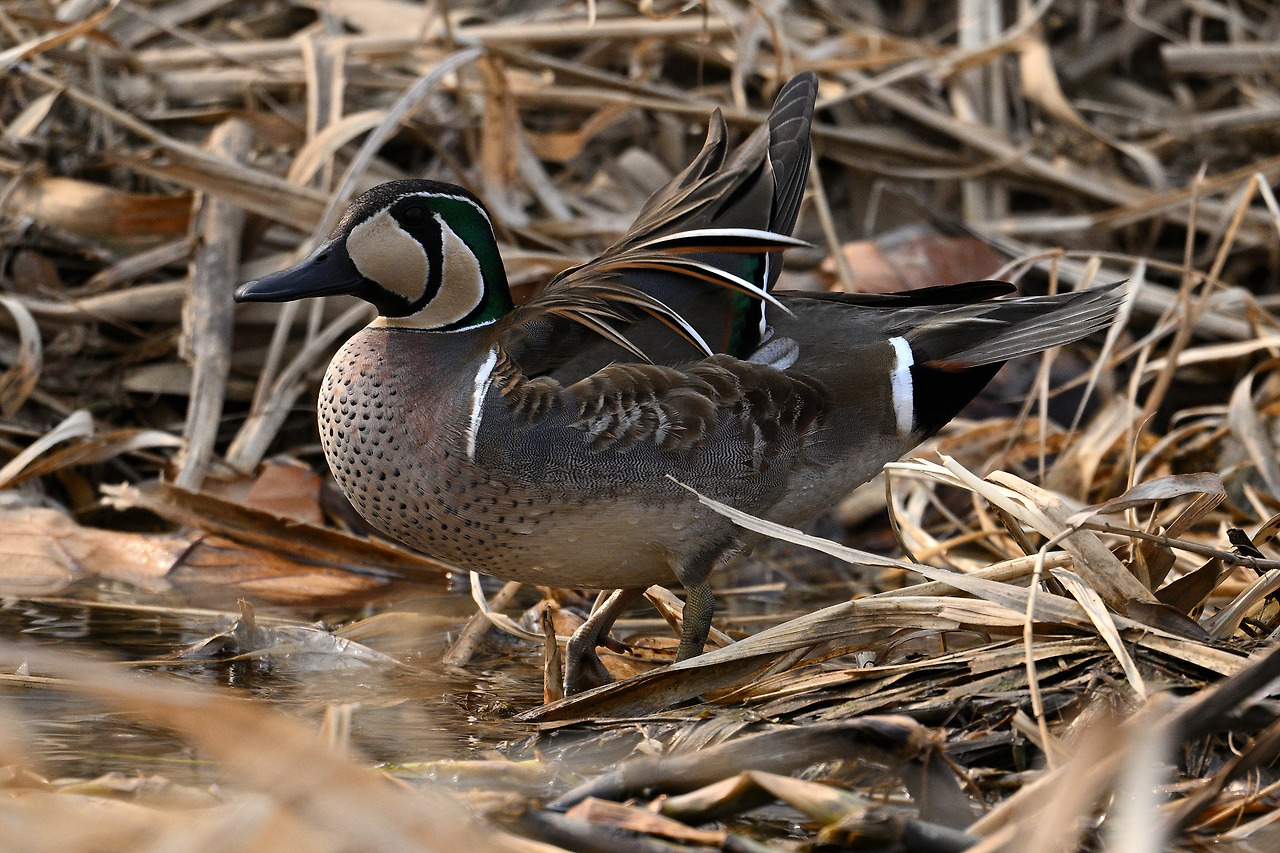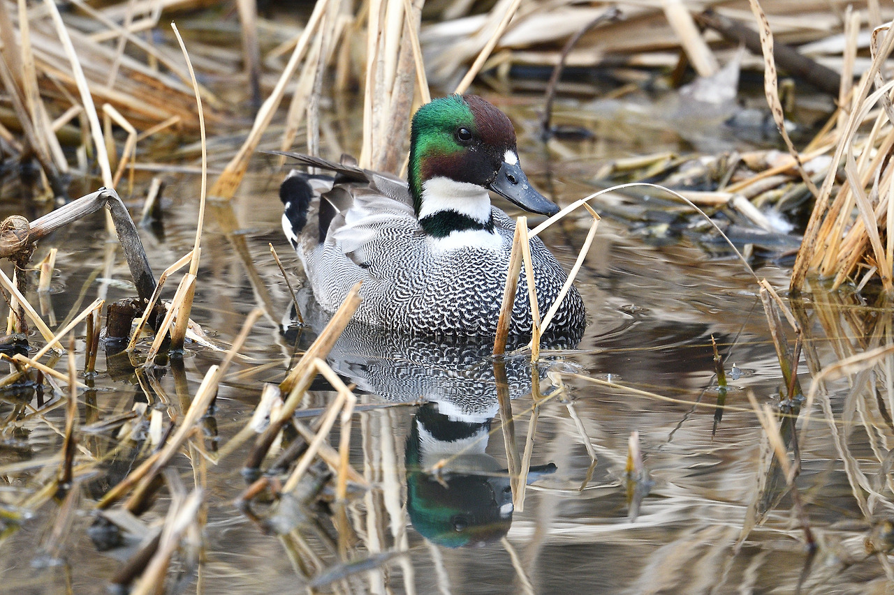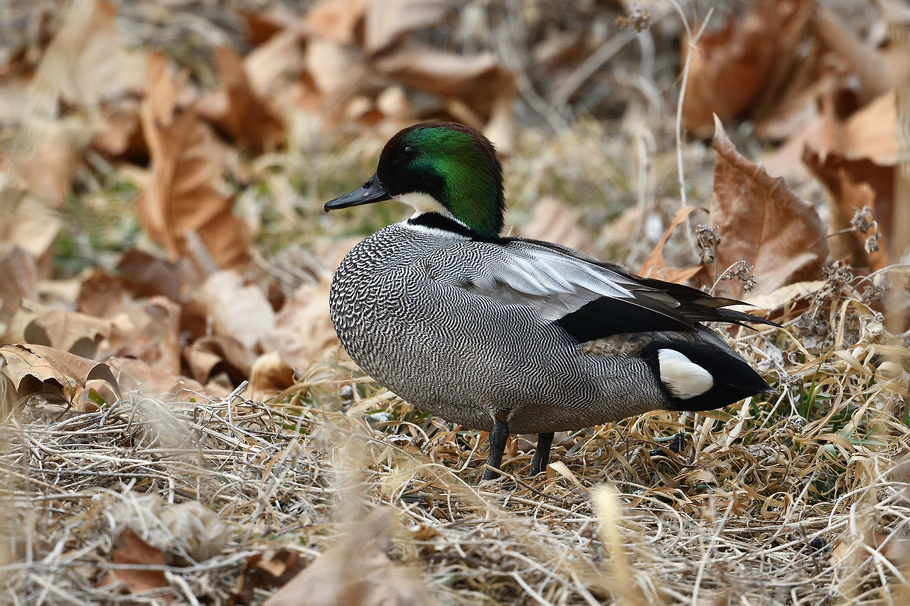 우거진 풀 속에서 갑자기 나타난 가창오리 수컷