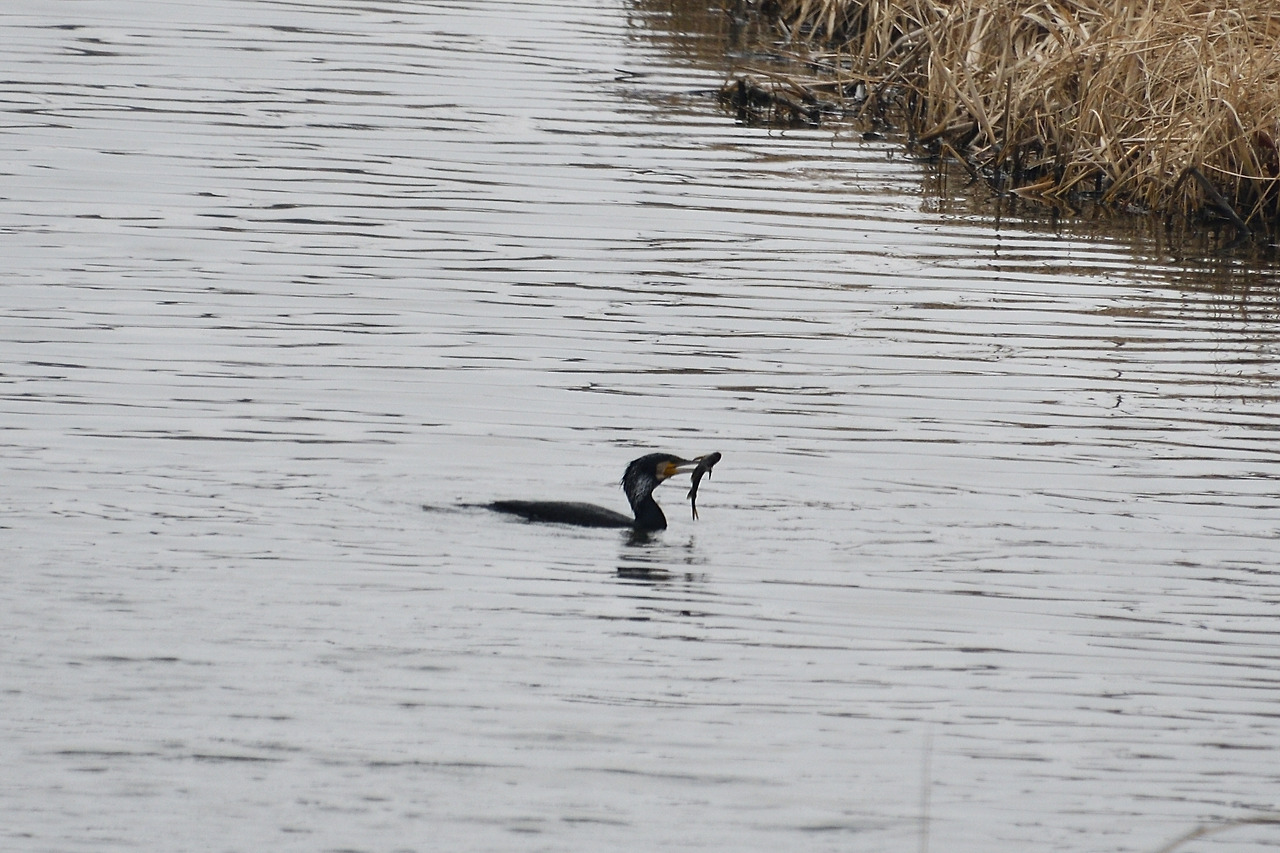 한 곳에서 여러 번 물고기를 잡는 가마우지
