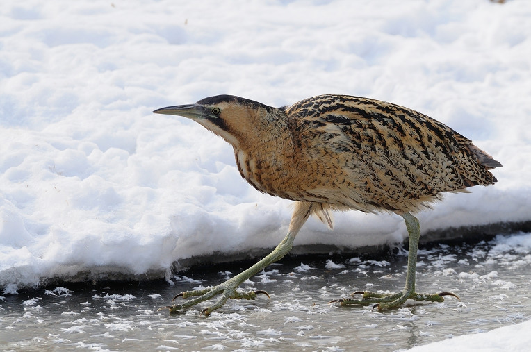 알락해오라기는 황새목 백로과에 속하는 흔치 않은 겨울새로 유럽과 아시아가 원산지이다. 몸길이는 약 70cm로 큰 해오라기의 일종이다. 온몸에 엷은 노란색에서 거의 검은색에 가까운 갈색 얼룩 가로무늬가 있다. 갈대밭, 풀이 우거진 습지, 호수 등에서 혼자 생활하며, 어류, 설치류, 개구리, 갑각류, 곤충류를 먹는다. 주로 밤에 활동하나 때로는 낮에도 활동한다. 얕은 물에서 먹이를 찾으며, 경계할 때는 주위 환경과 비슷하게 위장하는 행동을 하며, 직선 비상으로 단거리를 날아 풀 속으로 숨는다.