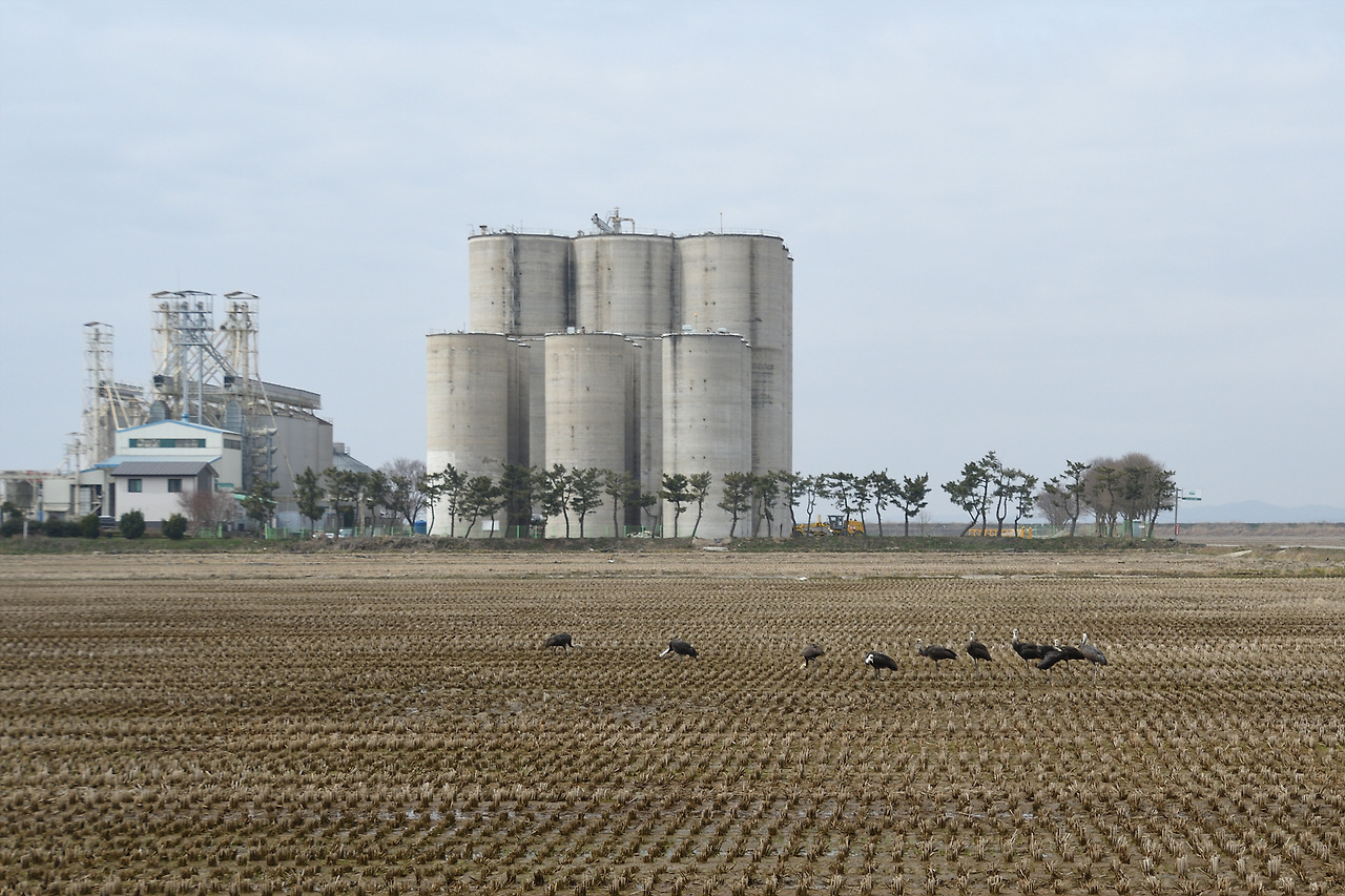 사일로 앞 흑두루미 가족
