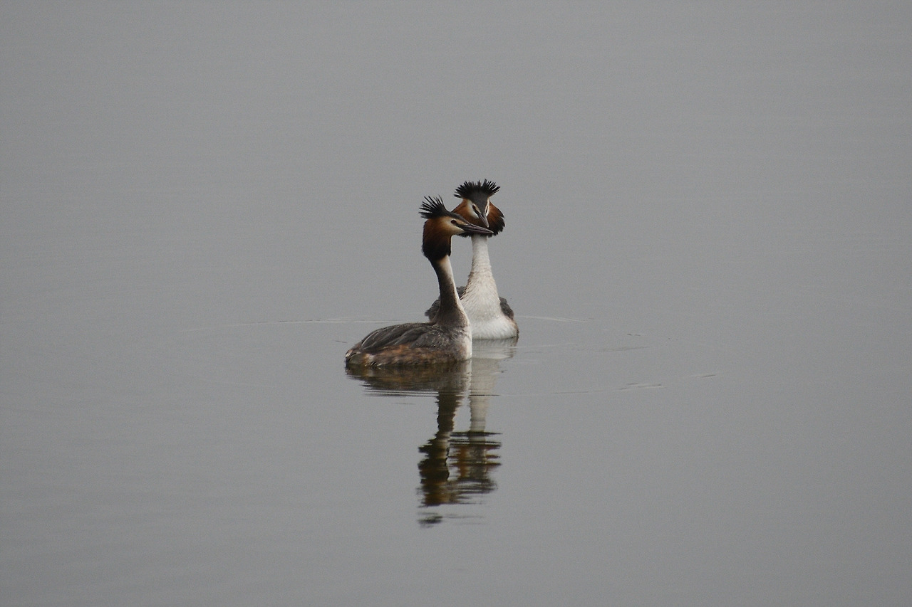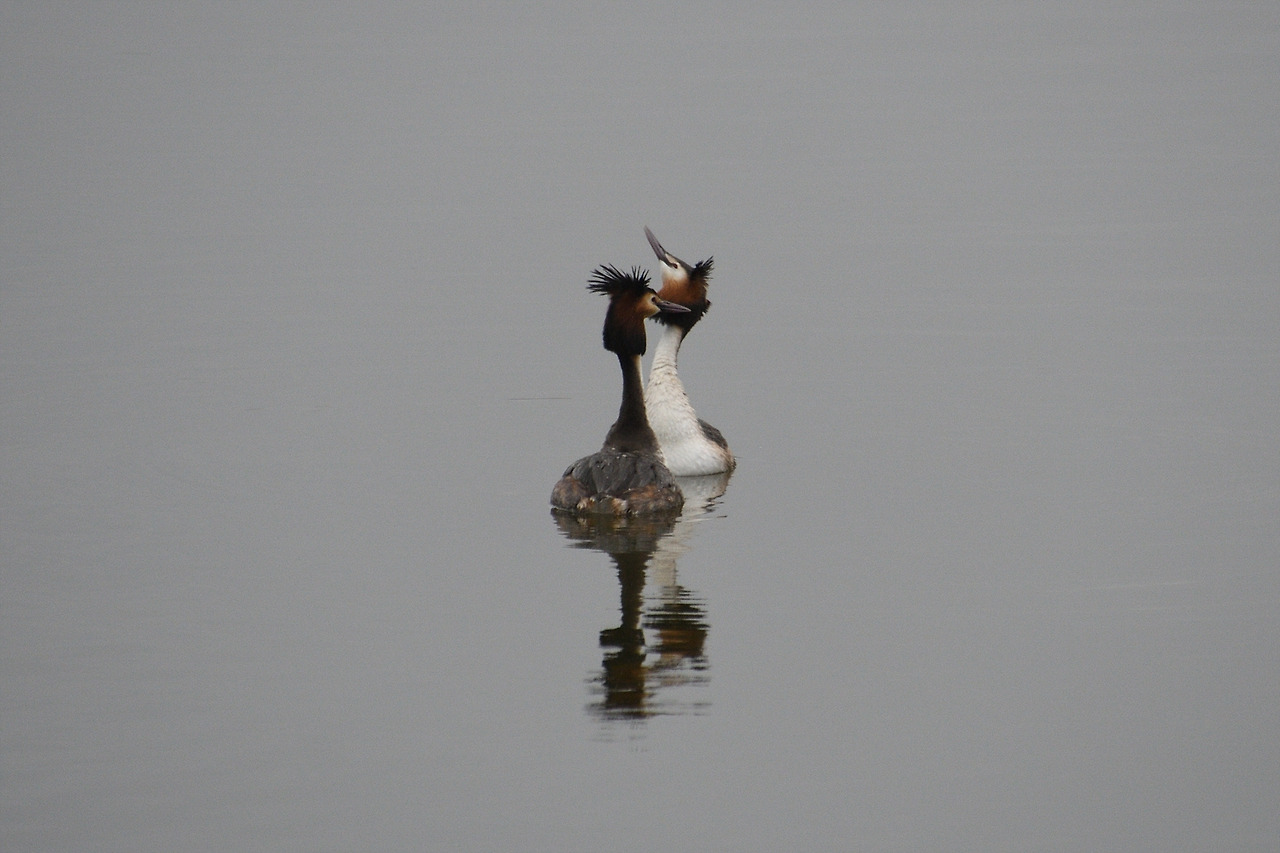 뿔논병아리 두 마리