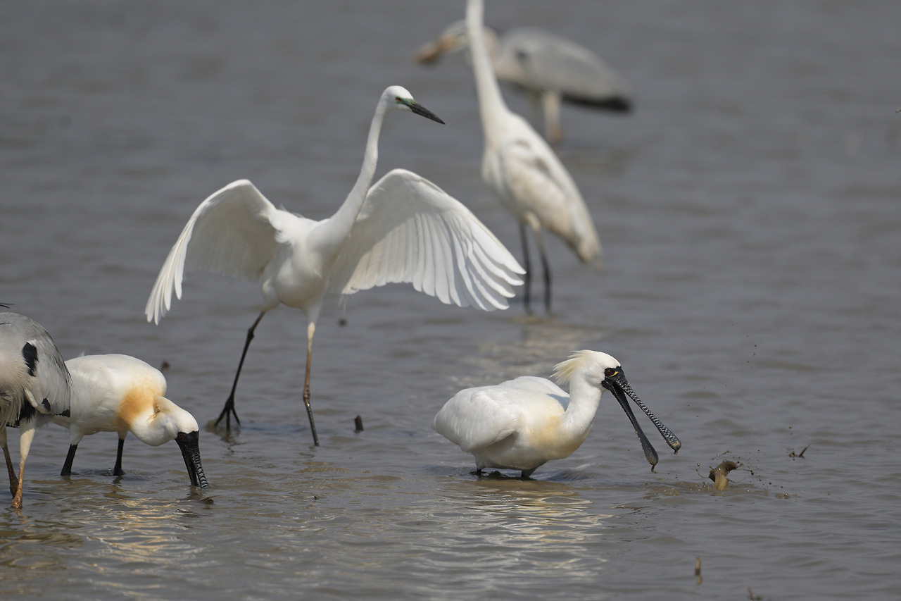 저어새들 한참을 사냥하다