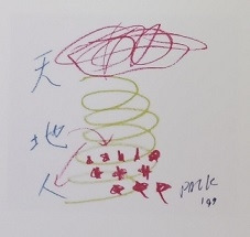 - <나, 너, 땅 그리고 하늘> : 백남준의 드로잉에는 꽃 형상의 이면에서 여러 개의 원이나 방사형으로 늘어선 점들이 모여 형상을 만드는 모티프가 자주 등장한다. 백남준의 세계에서 동심원 형태는 상이한 개체, 때, 장소를 연결하는 커뮤니티의 기호다. 작품 '다다익선'은 개천절의 의미를 되새겨 1003대의 모니터를 사용해 나와 너, 땅 그리고 하늘의 연결을 기원한 백남준의 민족적 축원이라고...