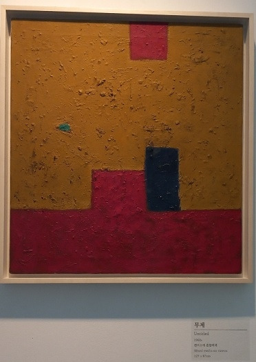 또 하나 특이한 전시로는 3층에 가니 앞면의 그림과 뒷면의 그림이 전혀 다른 작품이 걸려 있었다. '1970. 1월 구작을 뭉개고 점점화로 다시 그린 작품으로 앞뒤가 모두 보이게끔 전시되어 있어 화가의 노력을 엿볼 수 있었다.