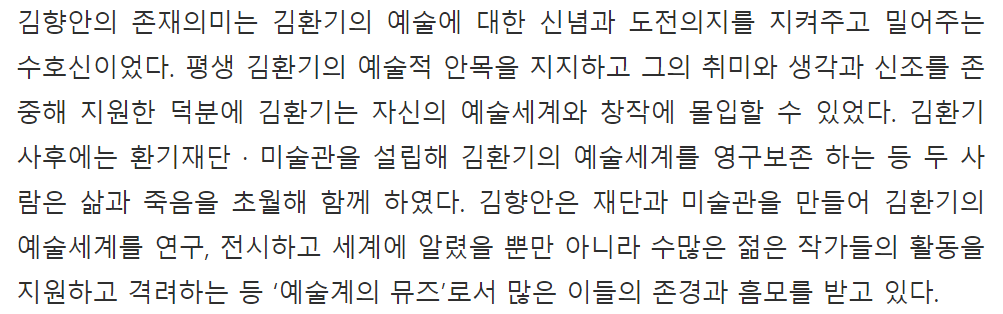 환기미술관을 돌아본 소감은 우리나라 최초의 추상화가(?), (그림이)젊은 화가라고 할 수 있는 김환기 화백에 대해 알게 되어 기쁘고 자랑스러웠다. 많은 분들이 환기미술관을 둘러보며 김환기 화백의 '추상화인데도 한국적'이라는 생각이 드는 작품을 감상하시길 권해 드린다.
