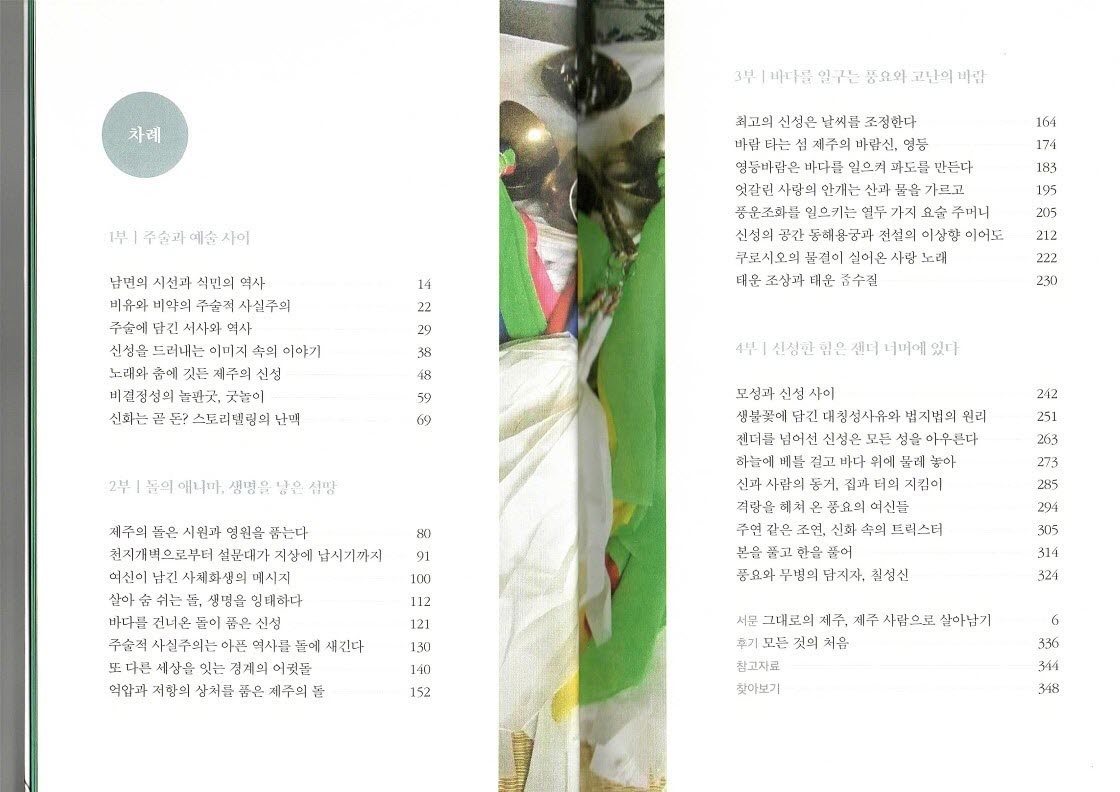 <모든 것의 처음, 신화>는 제주의 역사를 포함한 제주신화 이야기이다. 제주신화는 제주 굿 속에 오롯이 녹아 있다. 설문대할망 이야기, 세경본풀이, 이공본풀이, 초공본풀이 등... 거기에 제주에 남아있는 신당들에 얽힌 이야기, 신당 소개, 제주에서 굿이 갖는 의미 등... 신화에 관심 있는 분들이 한번 읽어보시면 작가의 방대한 지식에 대해 놀라시리라 생각한다.