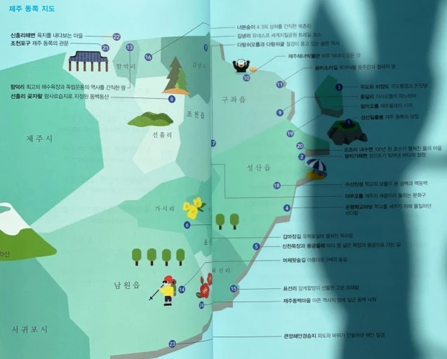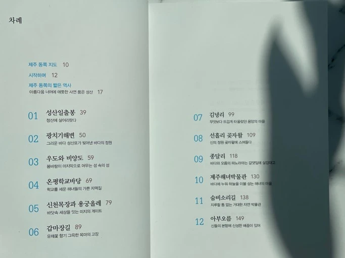 <제주 동쪽>은 여행 안내서이다. 제주 구석구석 아름다운 풍경뿐 아니라 그곳에 얽힌 역사와 제주 사람들의 아픔까지 낱낱이 말해주고 있다. 제주로 여행 가시는 분들도 알고 가시면 좋을 만한 지식들이 많이 담겨있다.