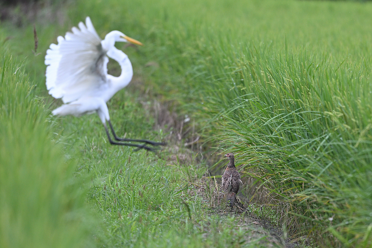 이번에는 꿩 유조가 있는 곳에 내려앉는 중대백로