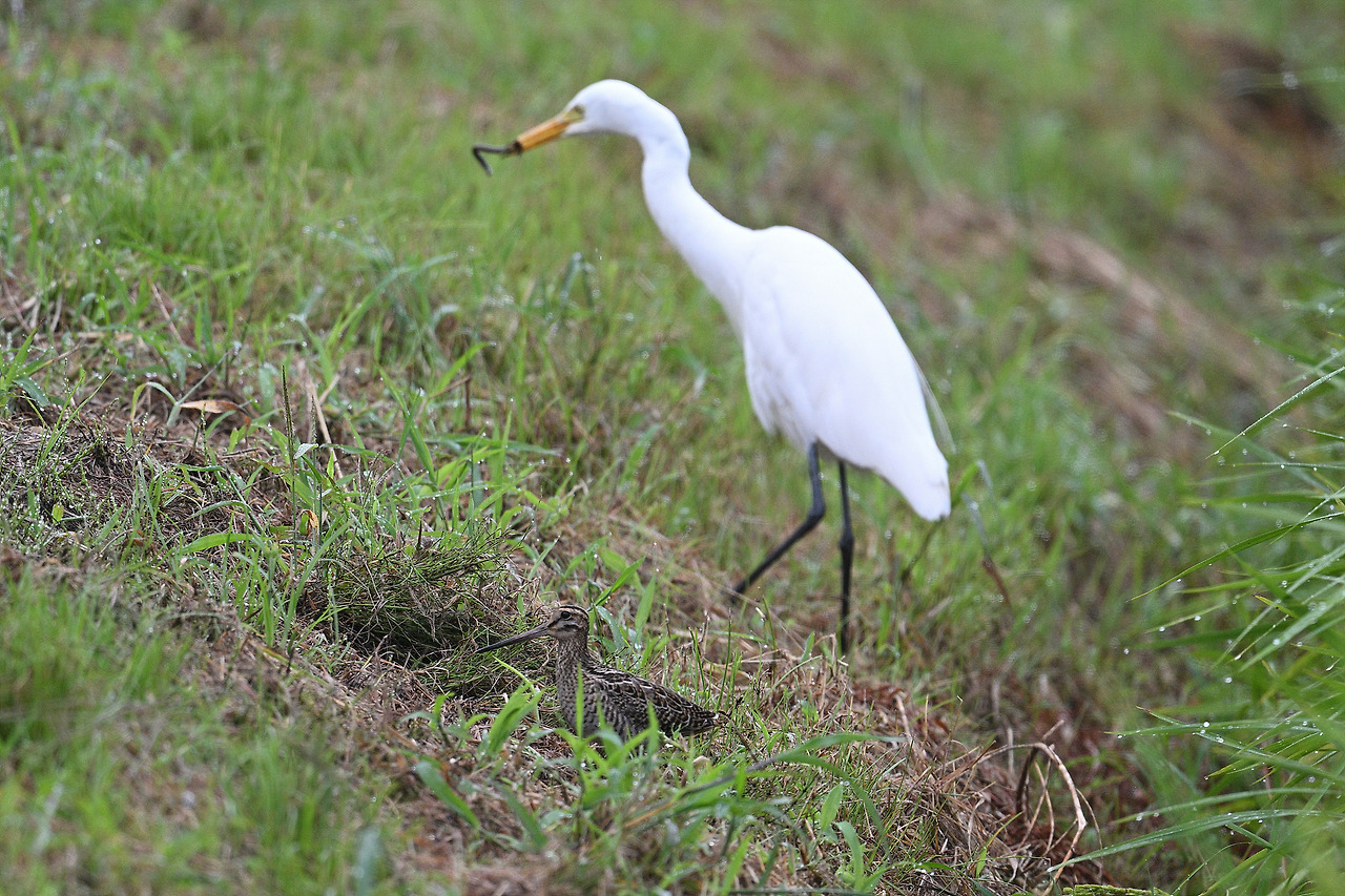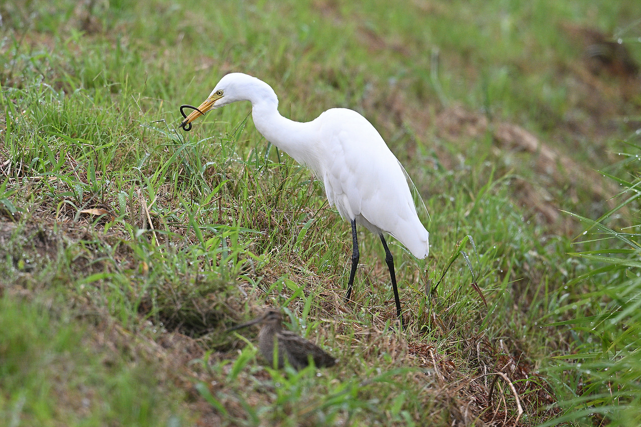 뒤에 있던 중대백로가...(처음엔 미꾸라지인 줄 알았다. 하지만 길이가...)