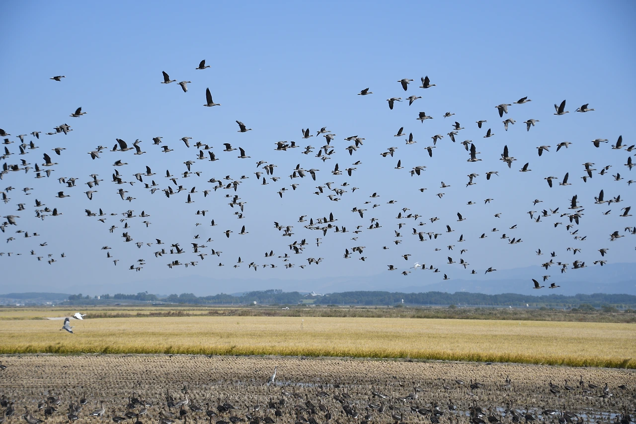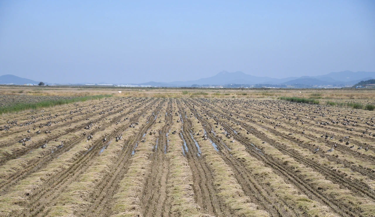 추수하고 난 자리엔 기러기가 까맣게...