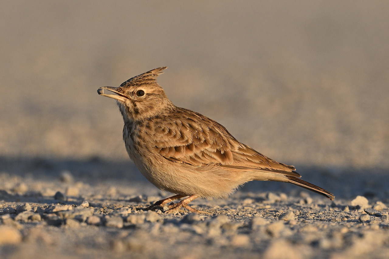 뿔종다리가 시멘트 바닥에...