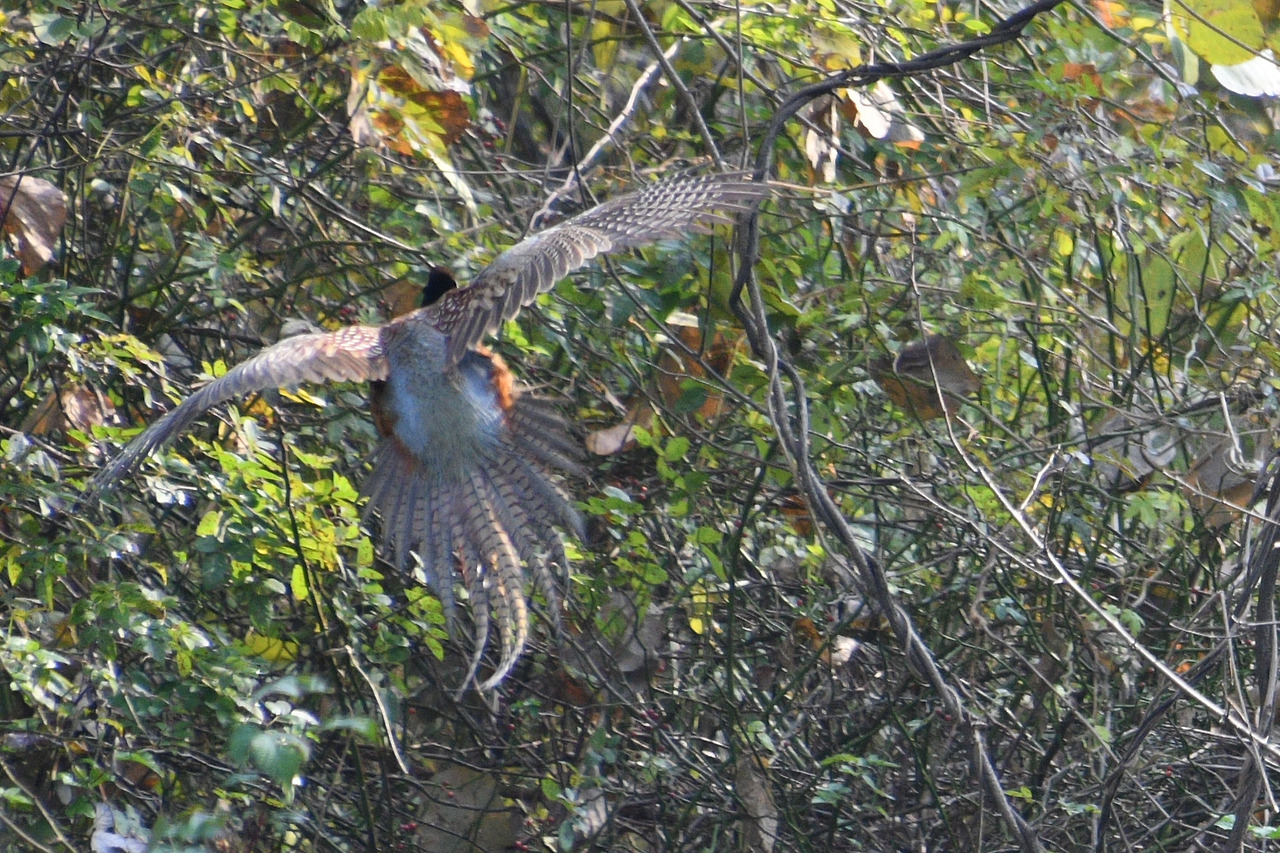 숲으로 숨어 들어가는 꿩