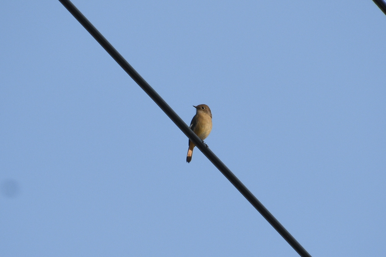 전선 위에 앉은 딱새 암컷