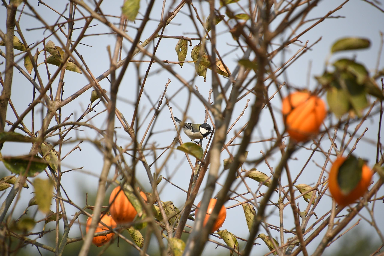 감나무에 앉은 박새