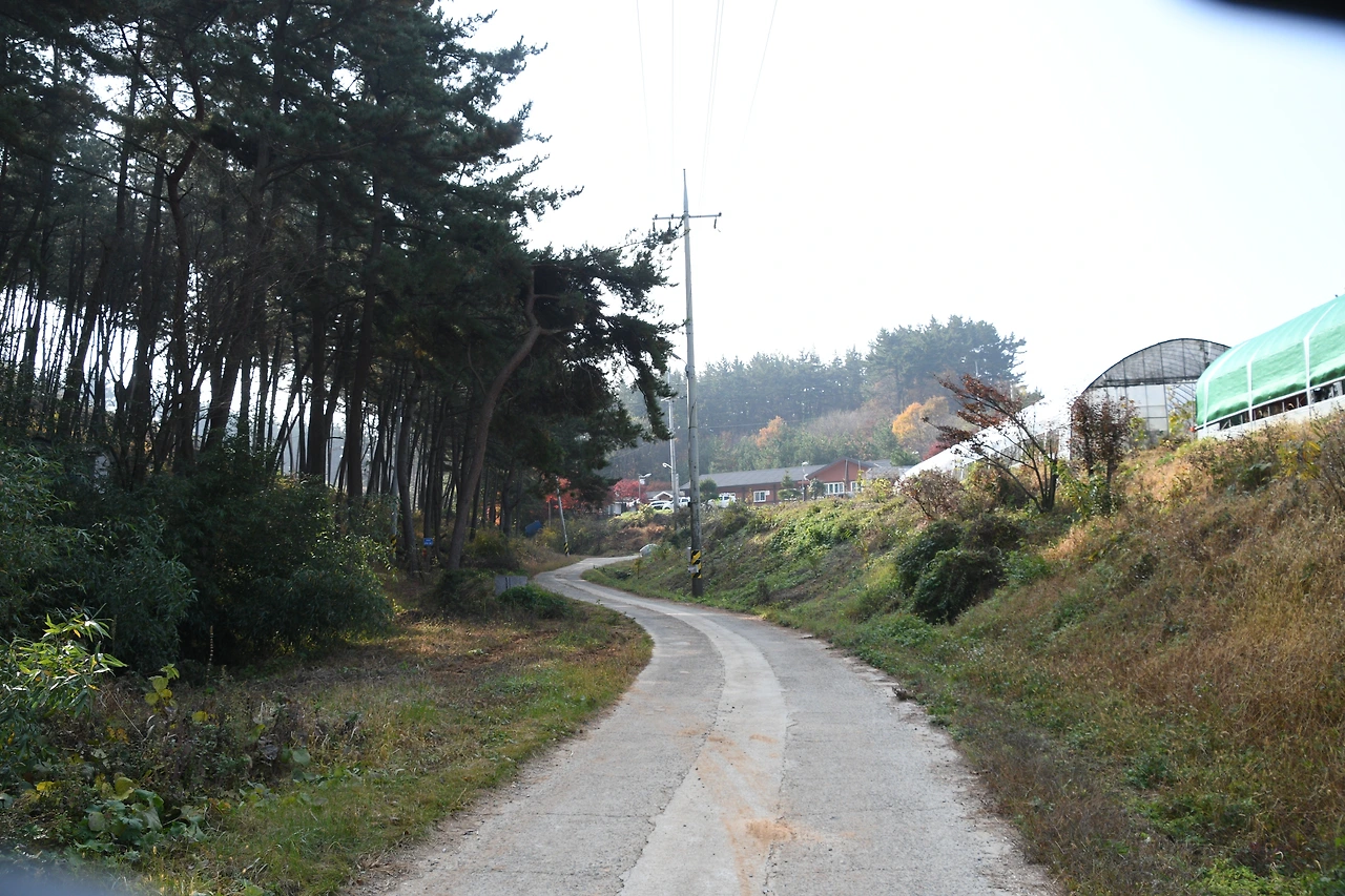 소나무가 울창한 길을 따라 들어오면 안골과수원과 갈두천배꽃노을체험장이 있다