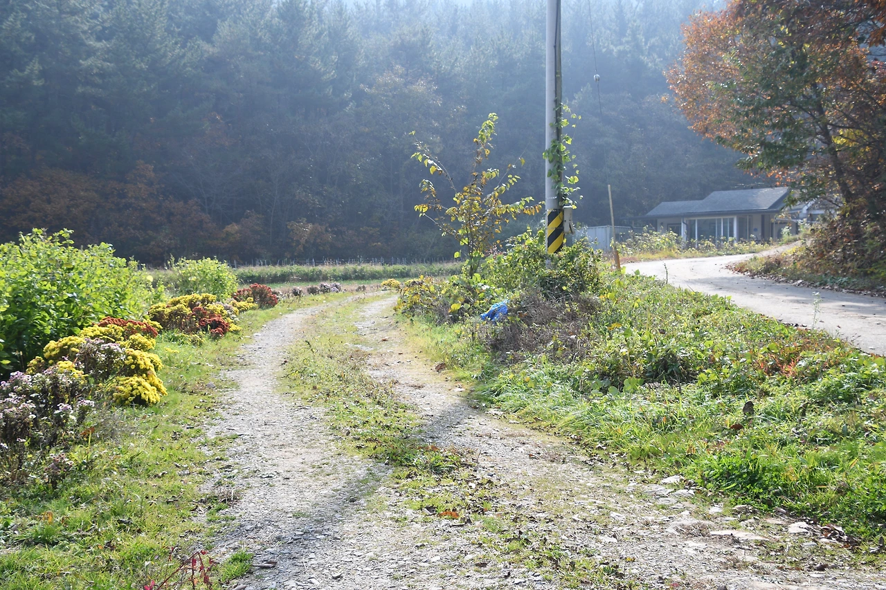 집으로 들어가는 길을 국화로 꾸민 집