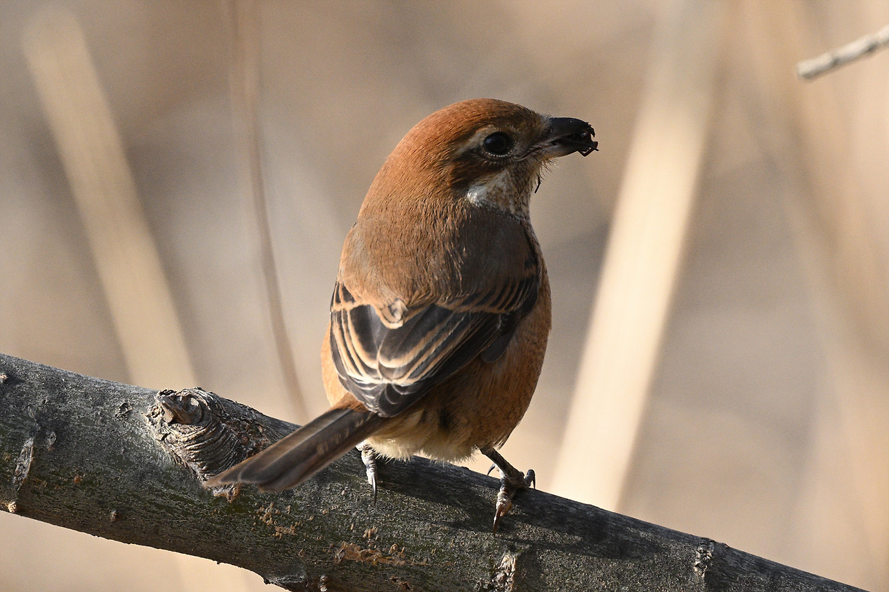 멧도요를 찍는데 때까치 암컷이 가깝게...