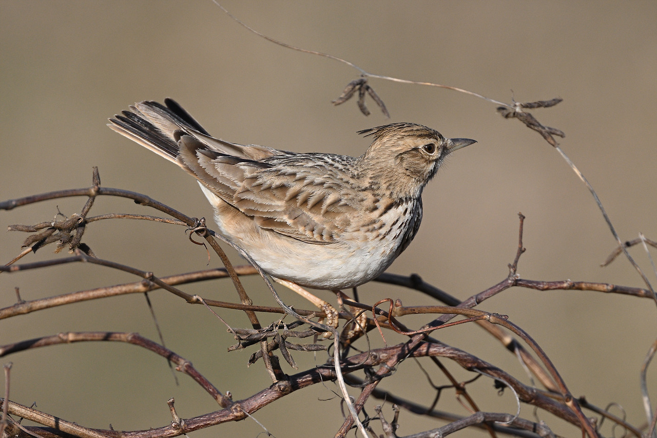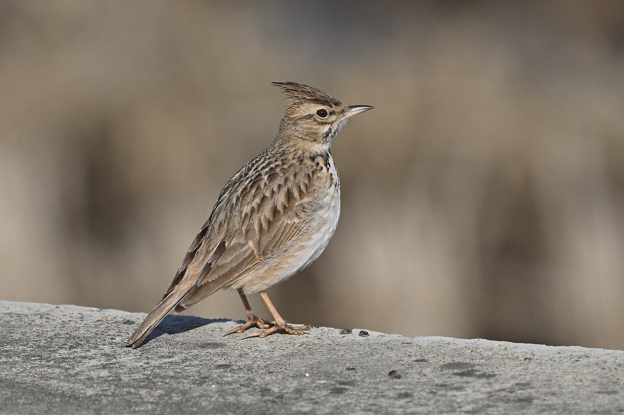 트레이드 마크인 뿔을 잔뜩 치켜세운 뿔종다리