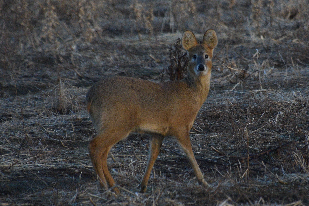 저녁 무렵 만난 고라니(차를 보고도 도망칠 생각을 않았다)