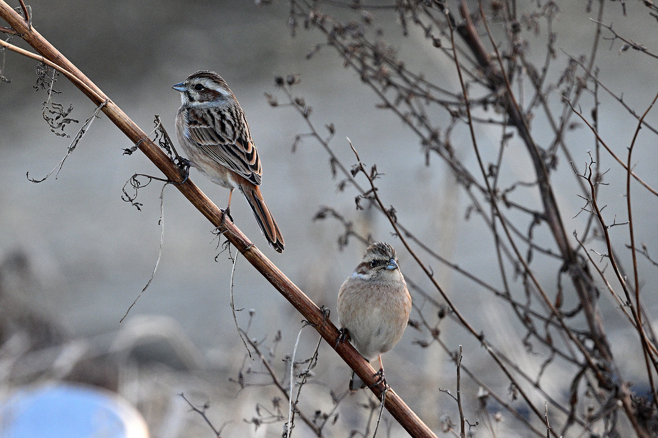 나오는 길 석양 녘에 만난 멧새 두 마리