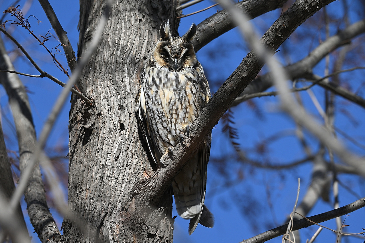 오늘은 칡부엉이 한 마리 자는 모습만...