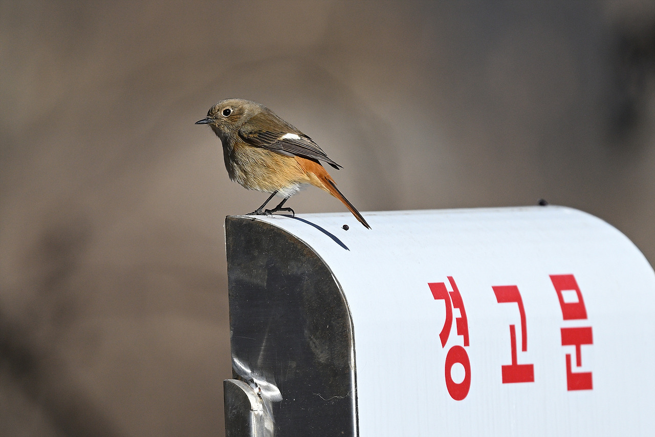 경고문 위에 예쁘게 앉은 딱새 암컷