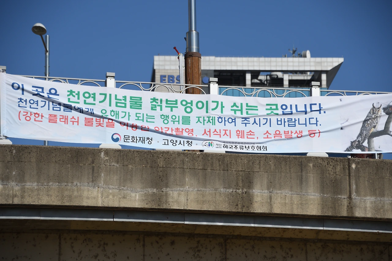 칡부엉이를 보호하자는 현수막이 여러 개 걸려 있고