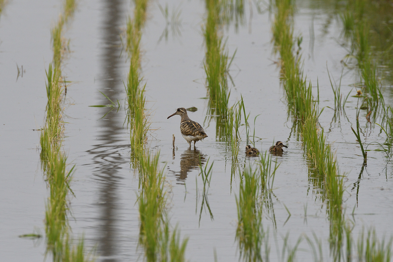 물 댄 논, 갓 심은 벼 사이로 뭔가 움직인다