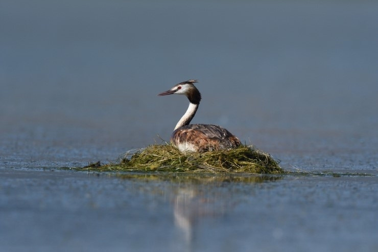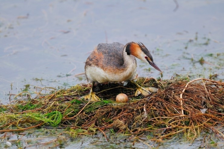 알을 품고 있는 뿔논병아리