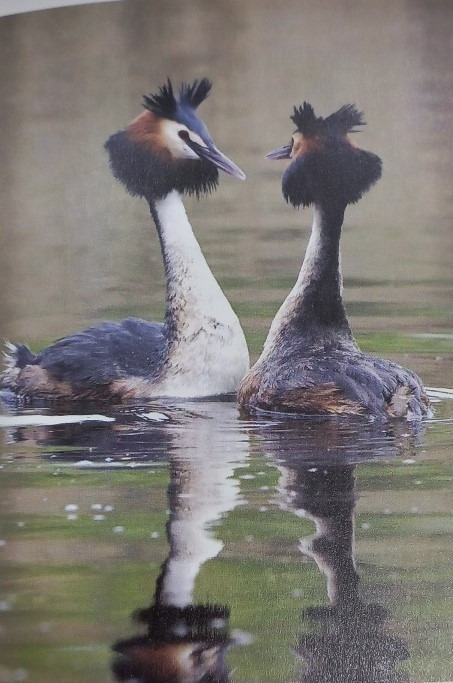 구애를 할 때면 부리를 마주하고 하트 모양의 춤을 춘다(책에 나온 사진)