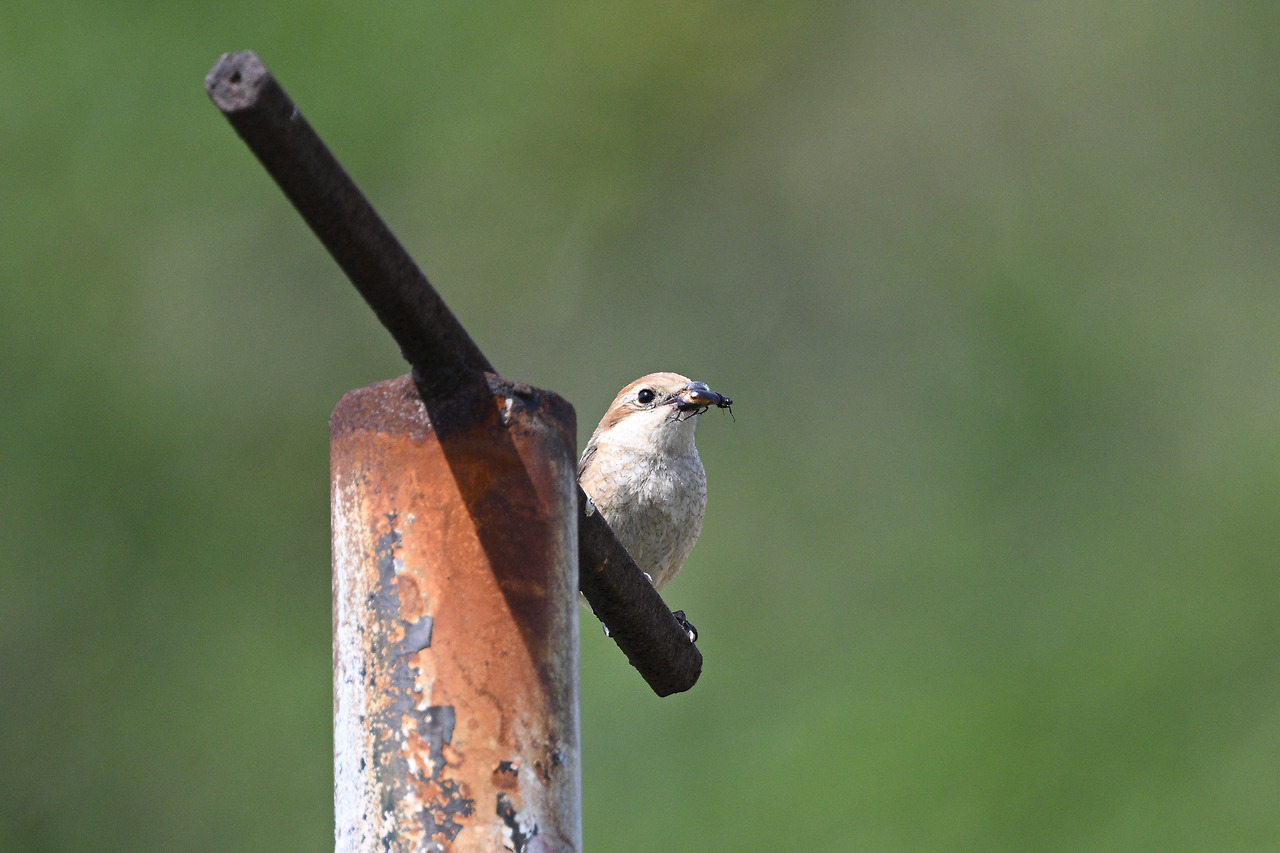 벌레를 물고 있는 때까치 암컷