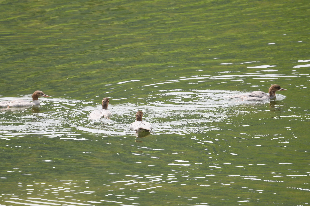 비오리가 주천강에서 육추를 끝낸 듯