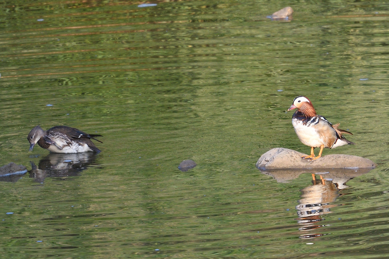 주천강에서 겨울을 난 듯한 원앙 한 쌍