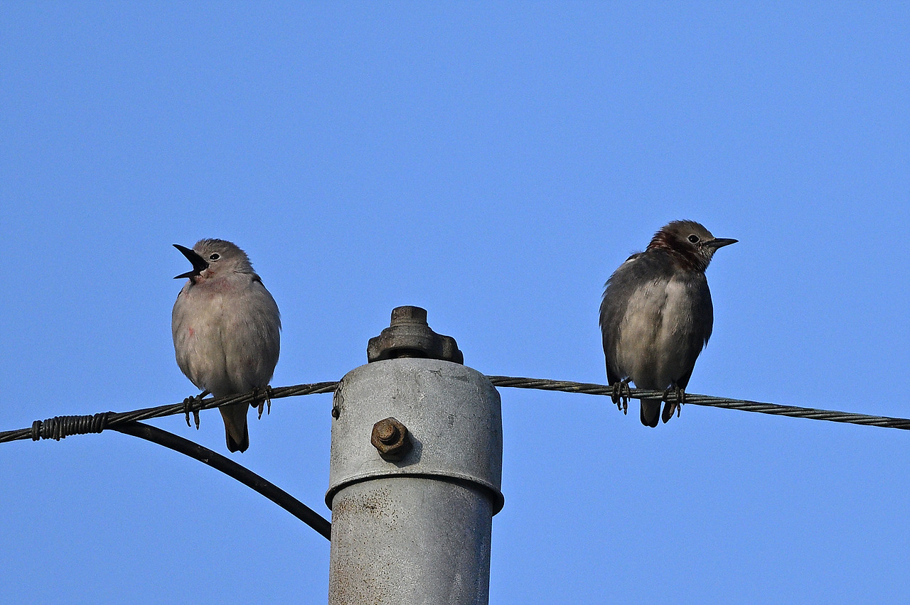 다른 찌르레기가 다시 전깃줄에 앉으려고 하니