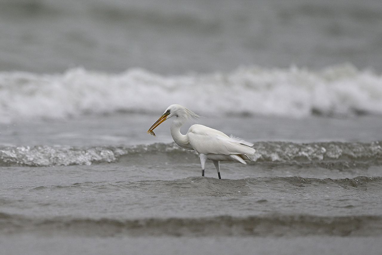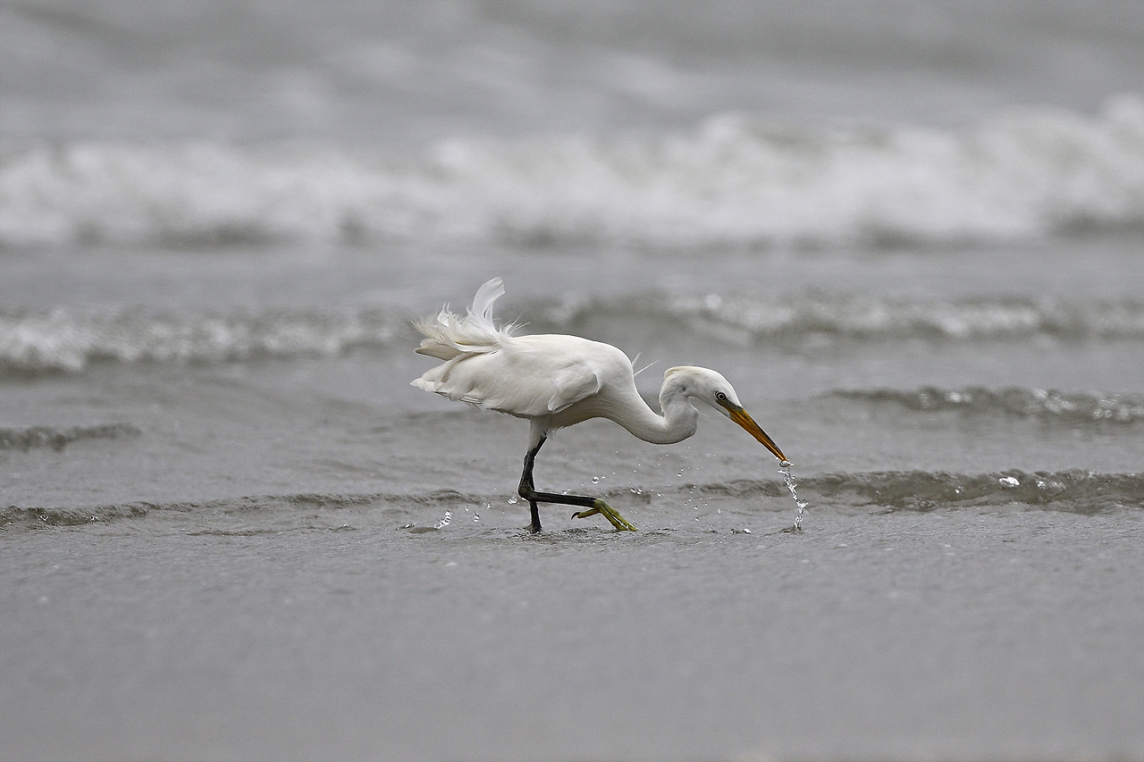 노랑부리백로(작은 복어를 잡았는데 바로 놓아준다. 먹지 못하는 줄 어찌 알고...)