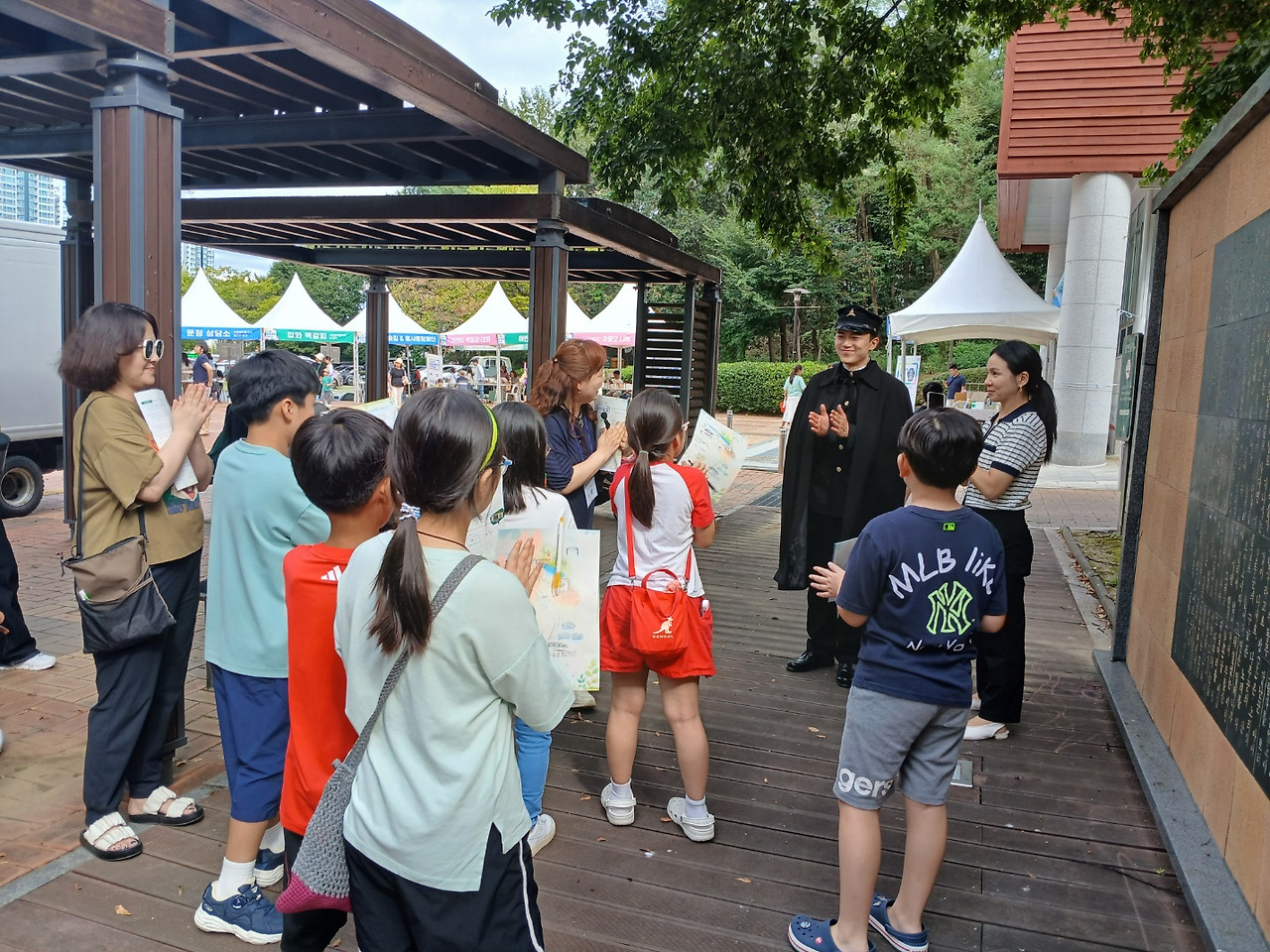 1시부터는 어린이백일장이 열렸고 체험부스도 운영했다. 많은 어린이들이 부모와 함께 참여한 어린이백일장은 성황리에 진행되었는데 글제는 <손>과 <웃음소리>였다. 그리고 2시부터 진행된 <홍사용탐정단>도 흥미로웠다. 노작홍사용에 대한 문제를 풀면서 문학관에 전시된 내용도 살피고 도서관, 시벽 등도 돌아보게 되어 있어 아이들에게 노작 홍사용 님을 알게 하는 좋은 프로그램이었다.